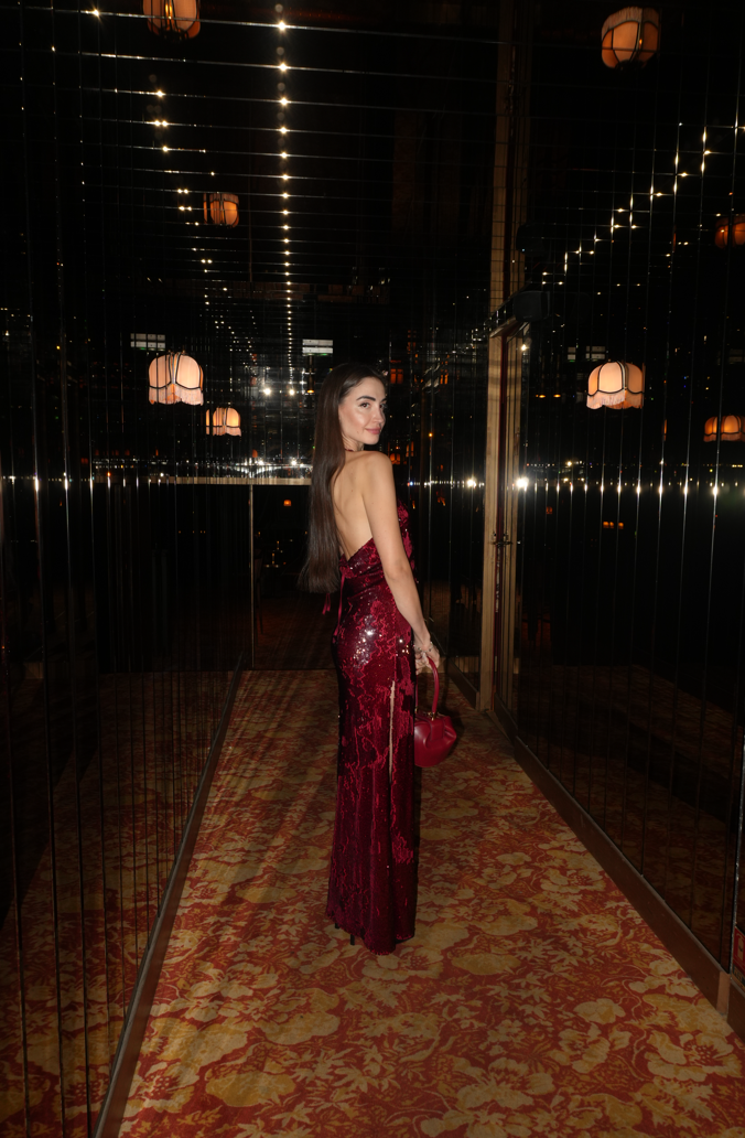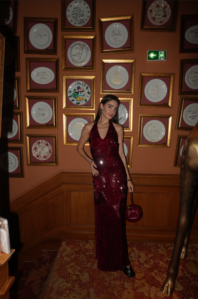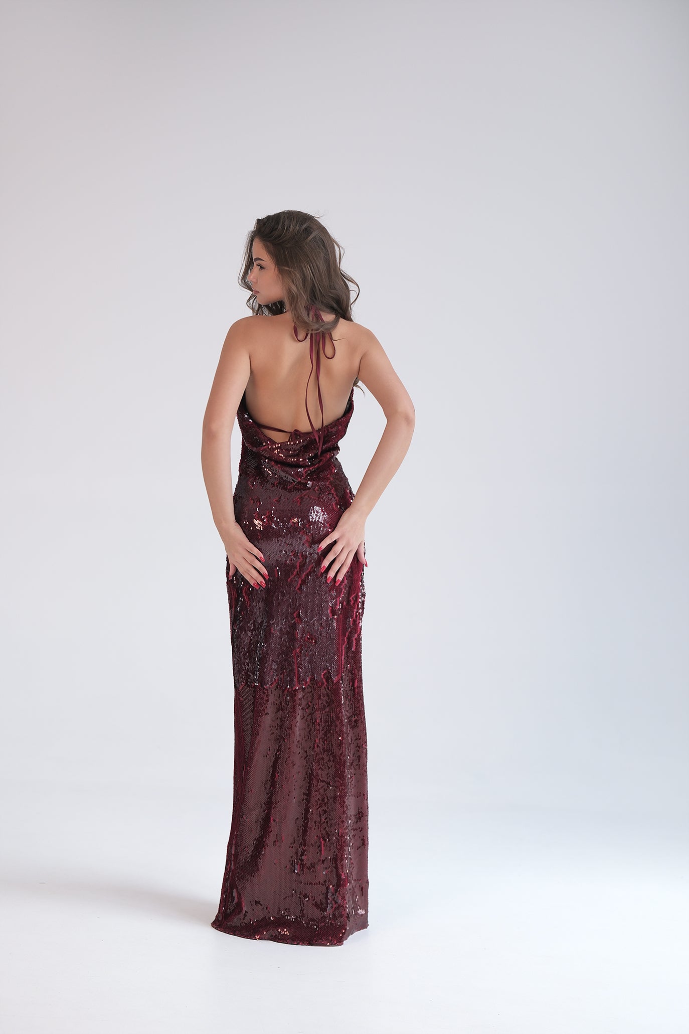 Рокля с изваян, женствен силует. Изработени от специален плат с безброй малки пайети, създаващ ослепителен ефект. С подплата, която е много приятна на допир към тялото. С изваян гол гръб и привлекателна висока цепка.