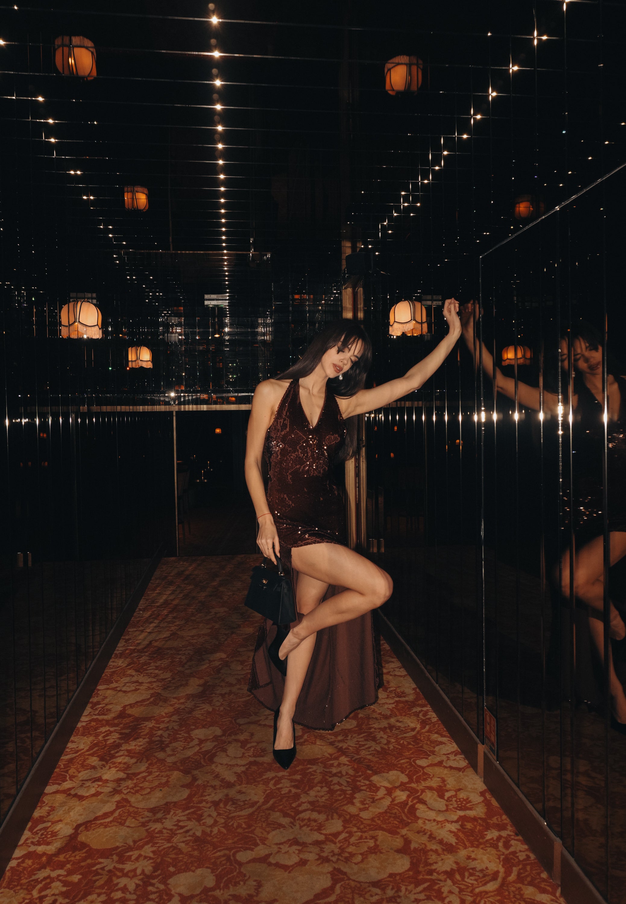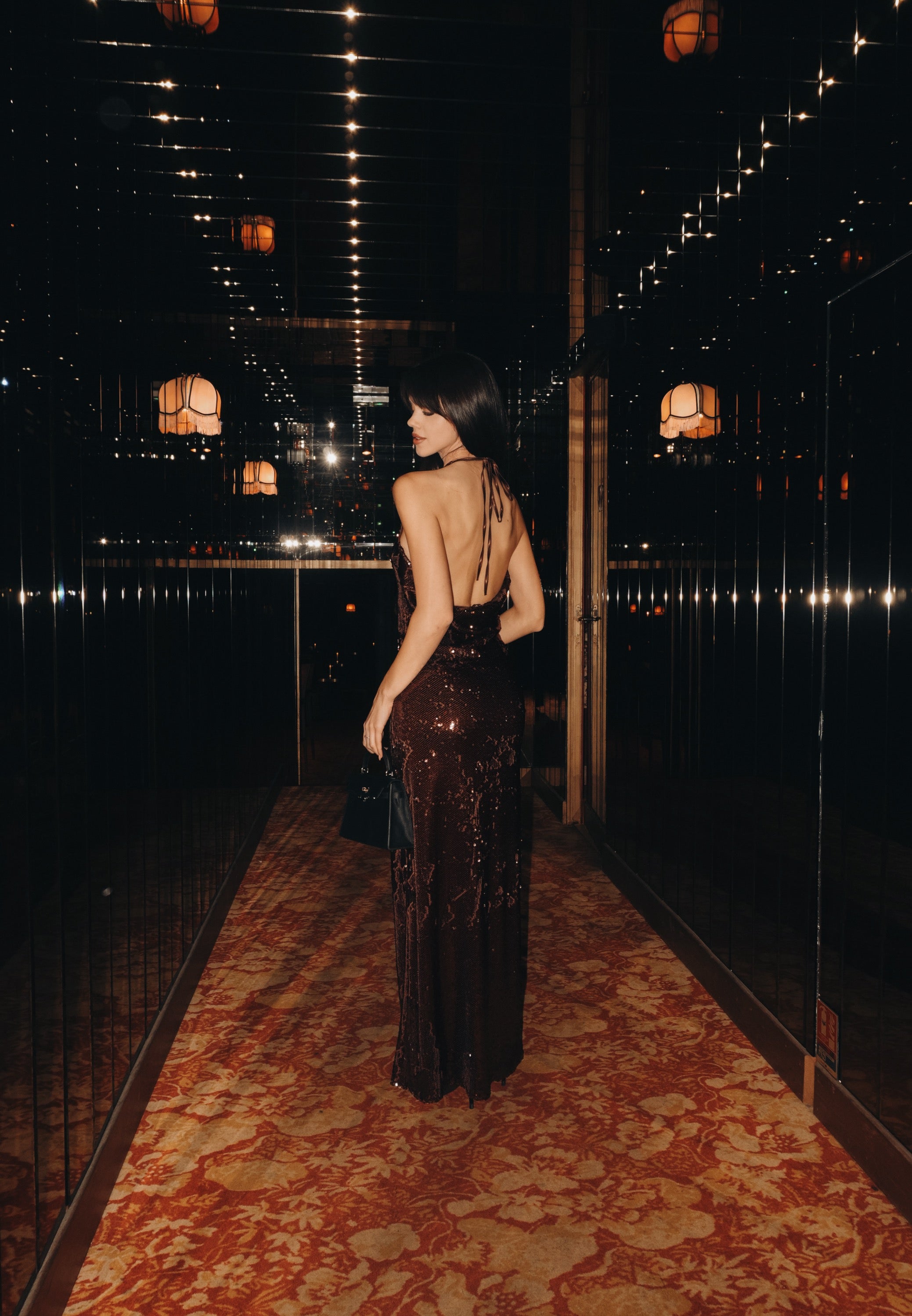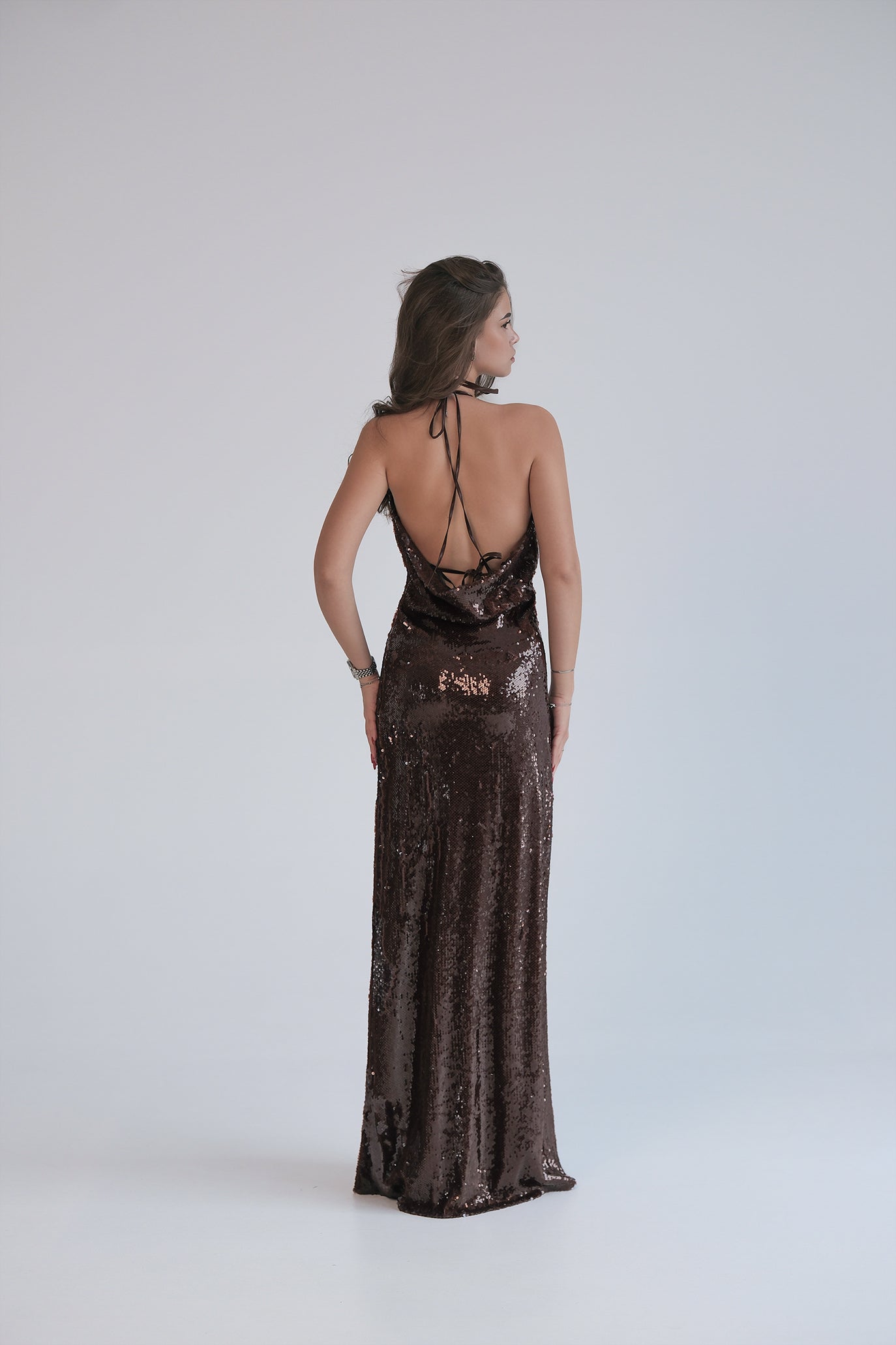 Рокля с изваян, женствен силует. Изработени от специален плат с безброй малки пайети, създаващ ослепителен ефект. С подплата, която е много приятна на допир към тялото. С изваян гол гръб и привлекателна висока цепка.