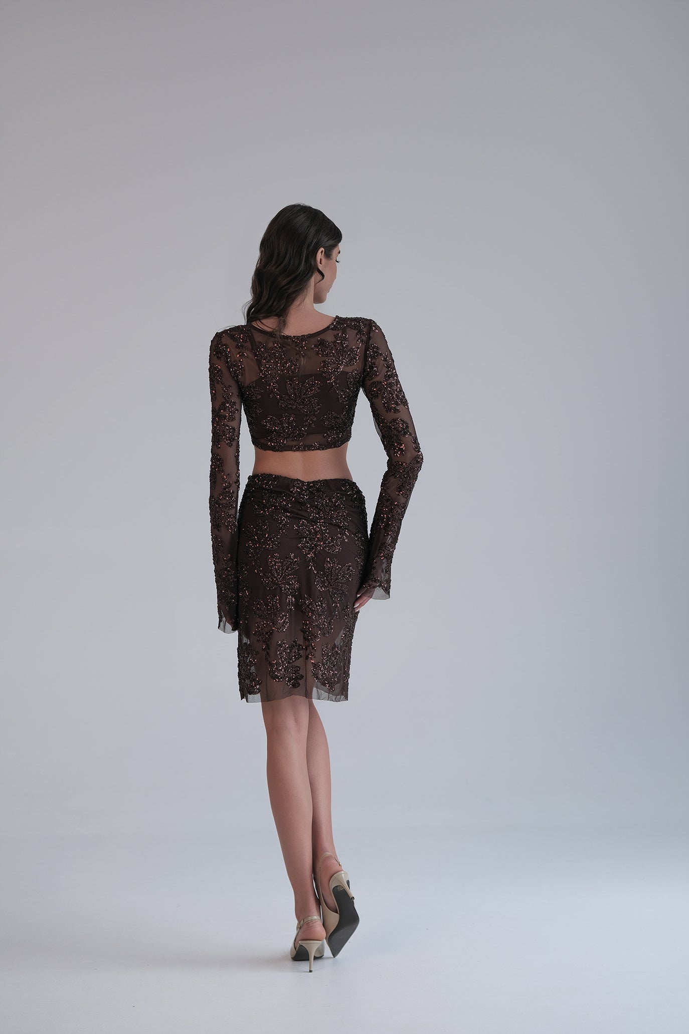 Дантелен сет с къса пола в кафяво: Amperium