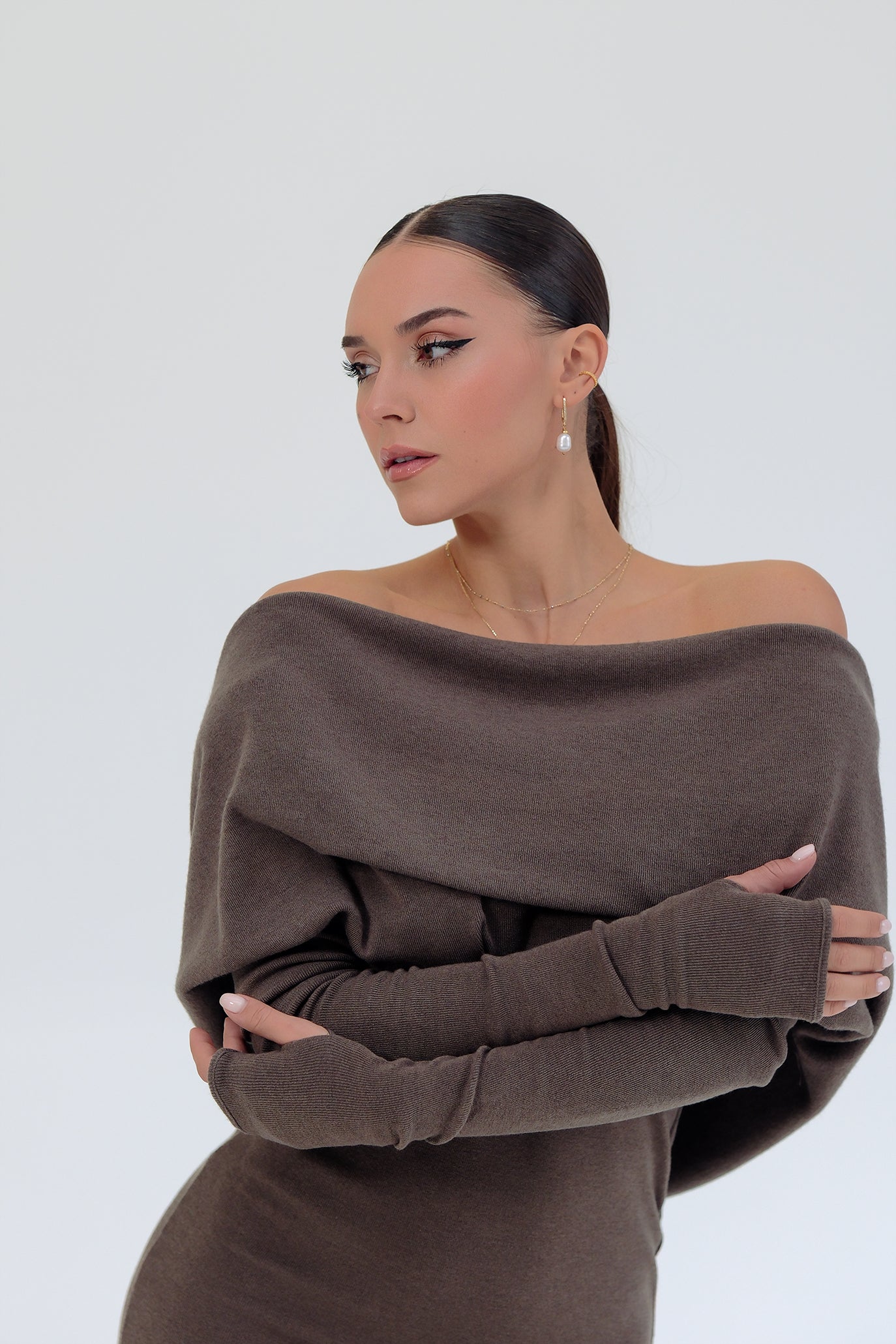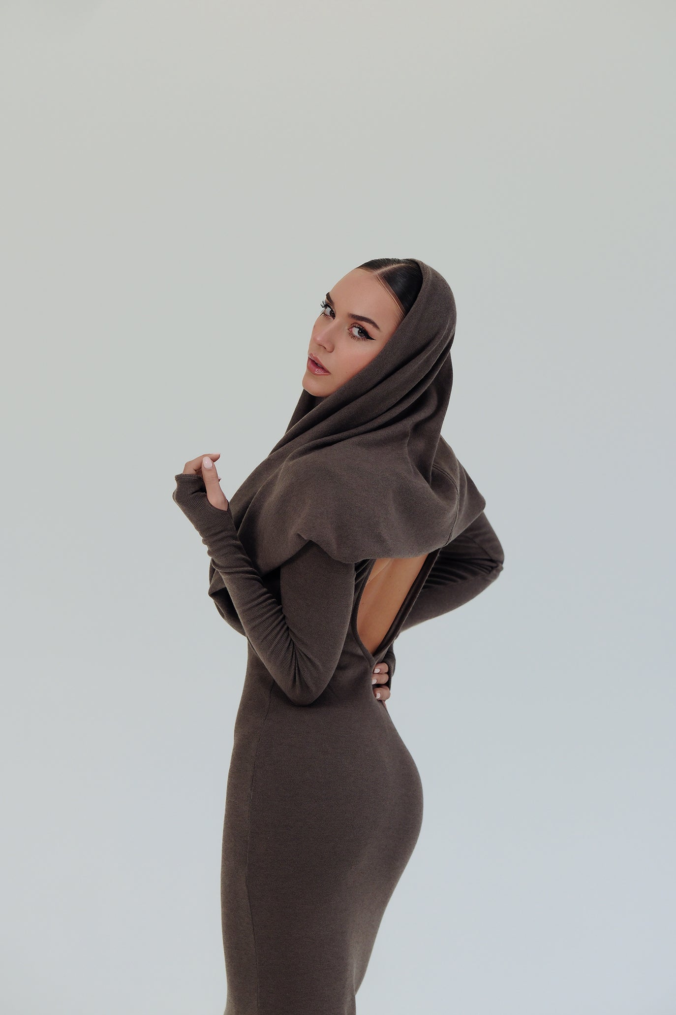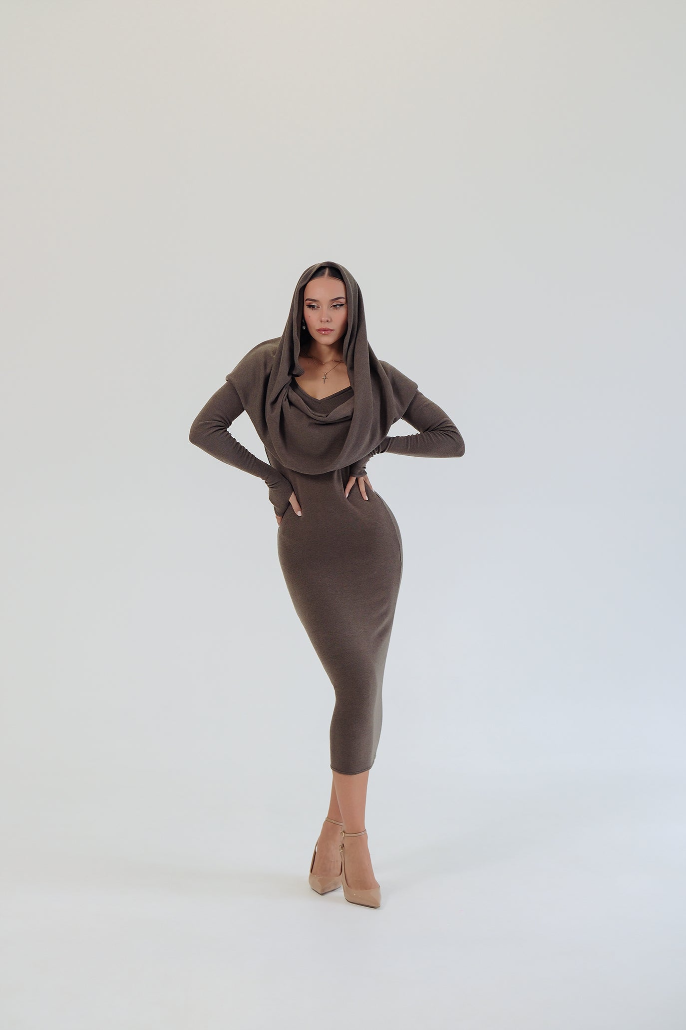 Дълга рокля с ръкави в кафяво: Linda