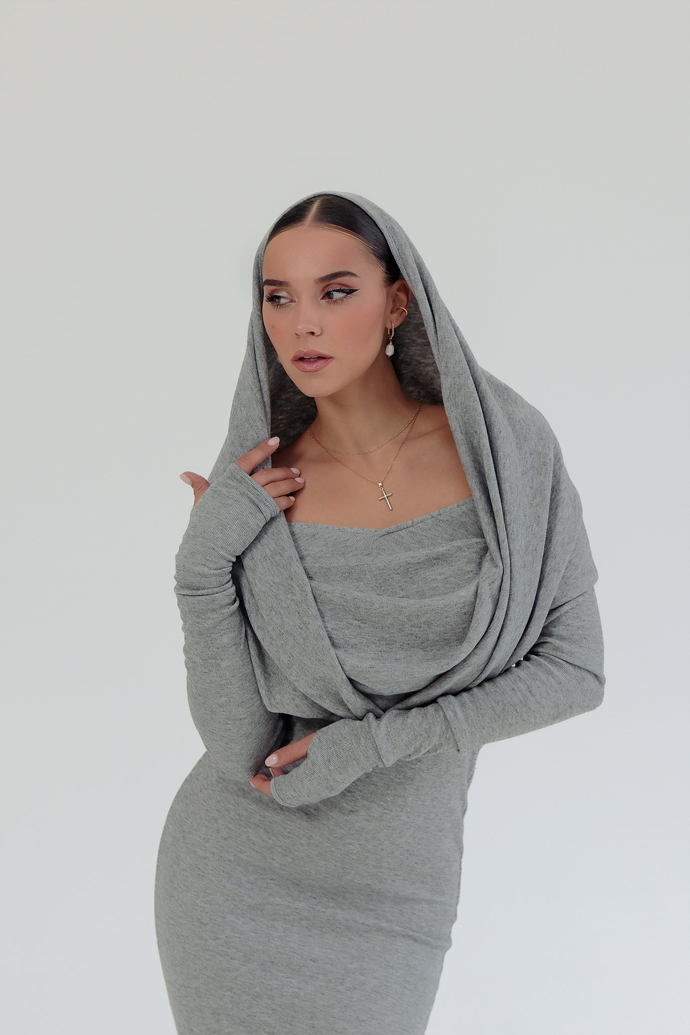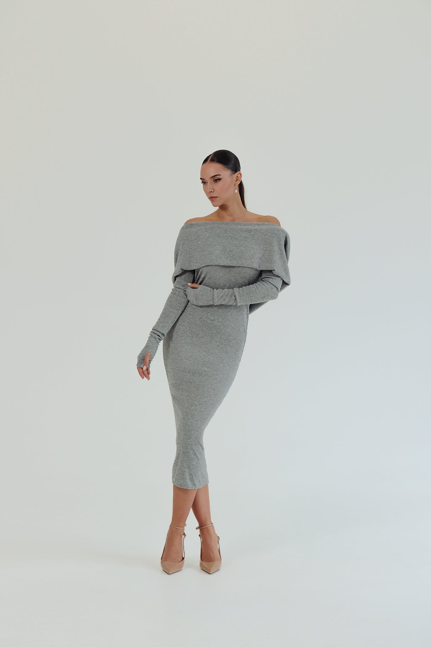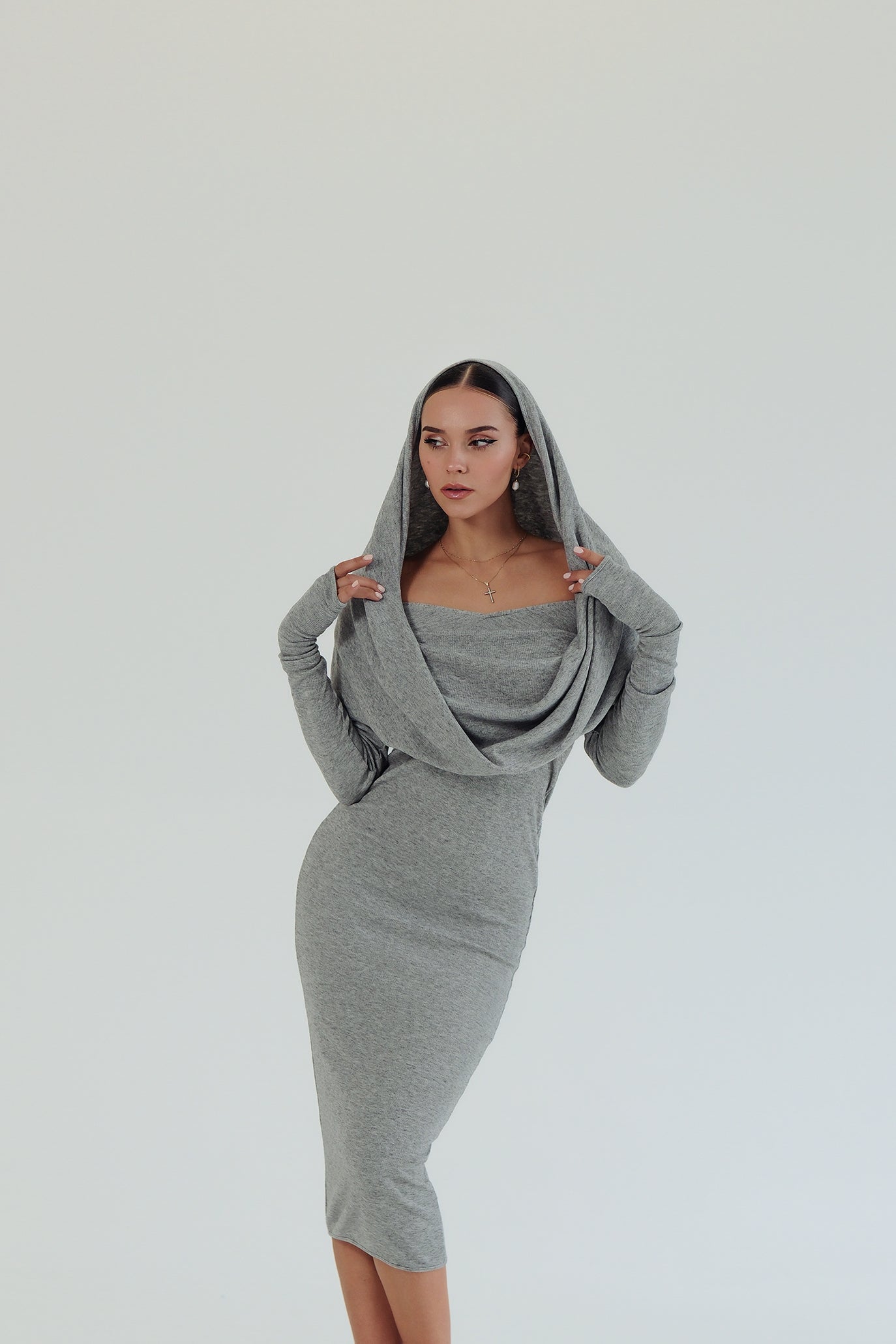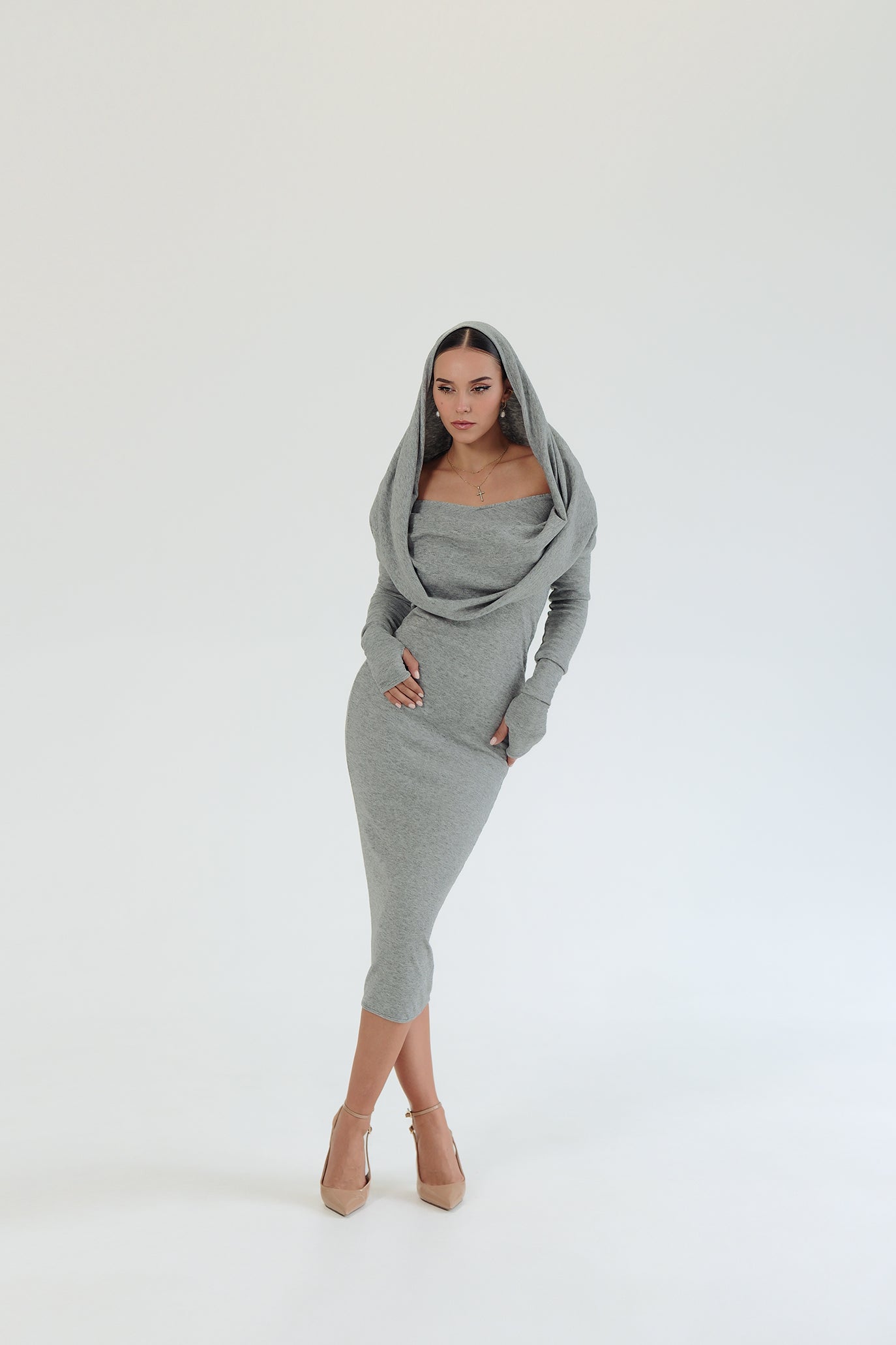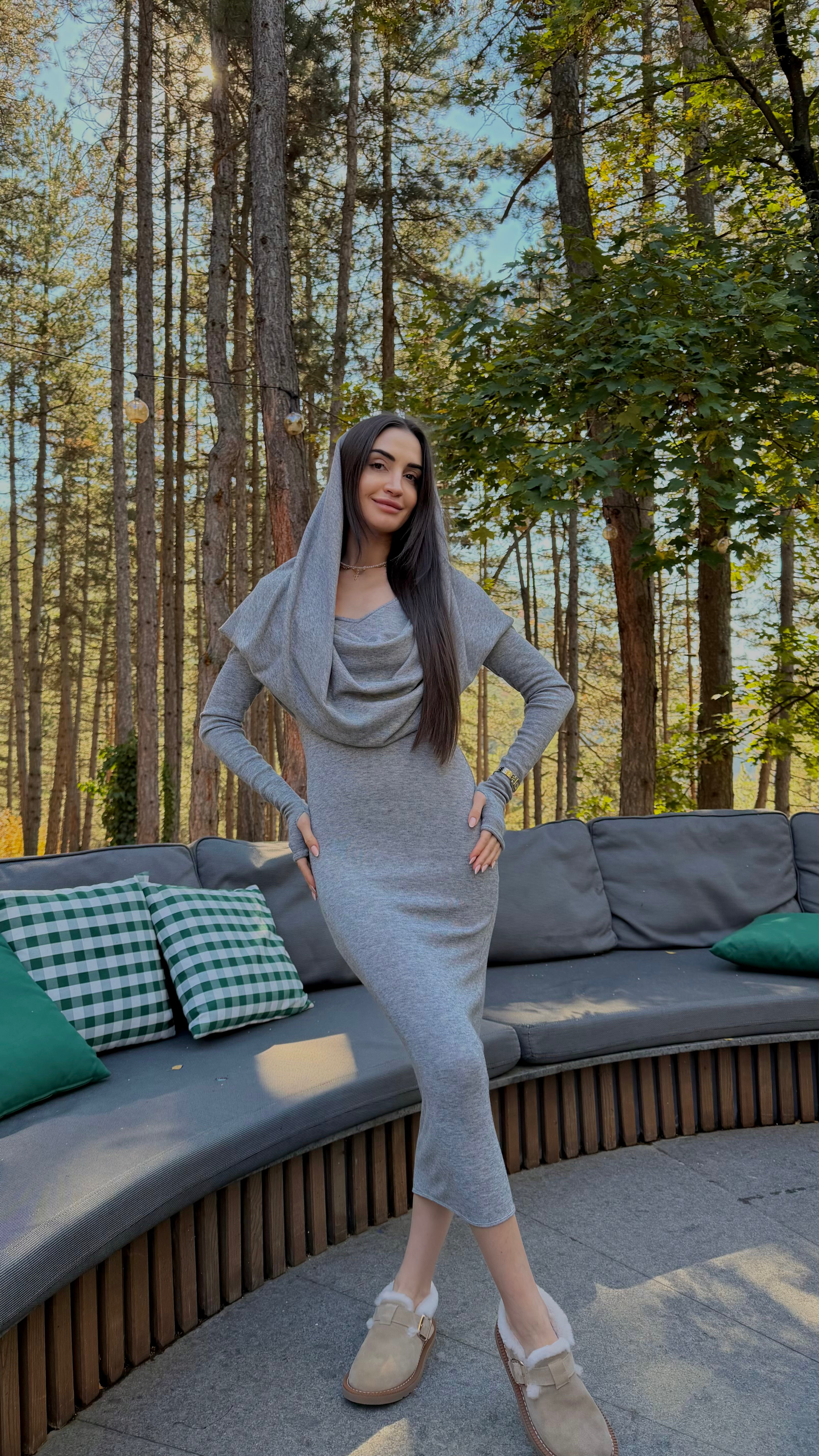 Тази рокля е олицетворение на онзи тип елегантност, която не се нуждае от обяснения. Меката и еластична материя прилепва по тялото като втора кожа, подчертавайки извивките с лекота. Има тип шал, който може да се носи по различни начини. Придава чувственост, а вталеният силует и дължината до глезена правят модела подходящ както за вечерни събития, така и за ежедневието. Изключително комфортна за носене, благодарение на еластичната основа.