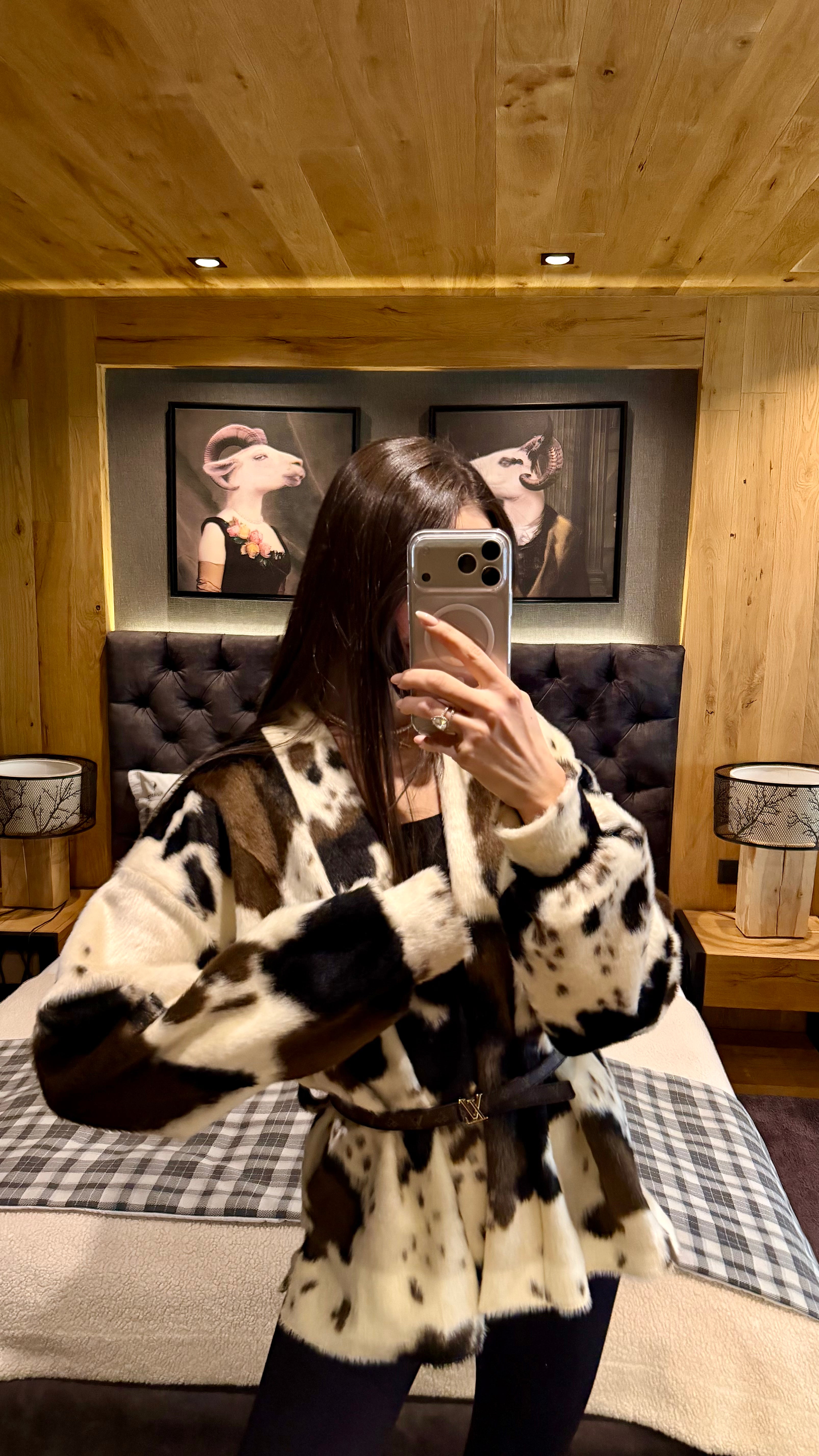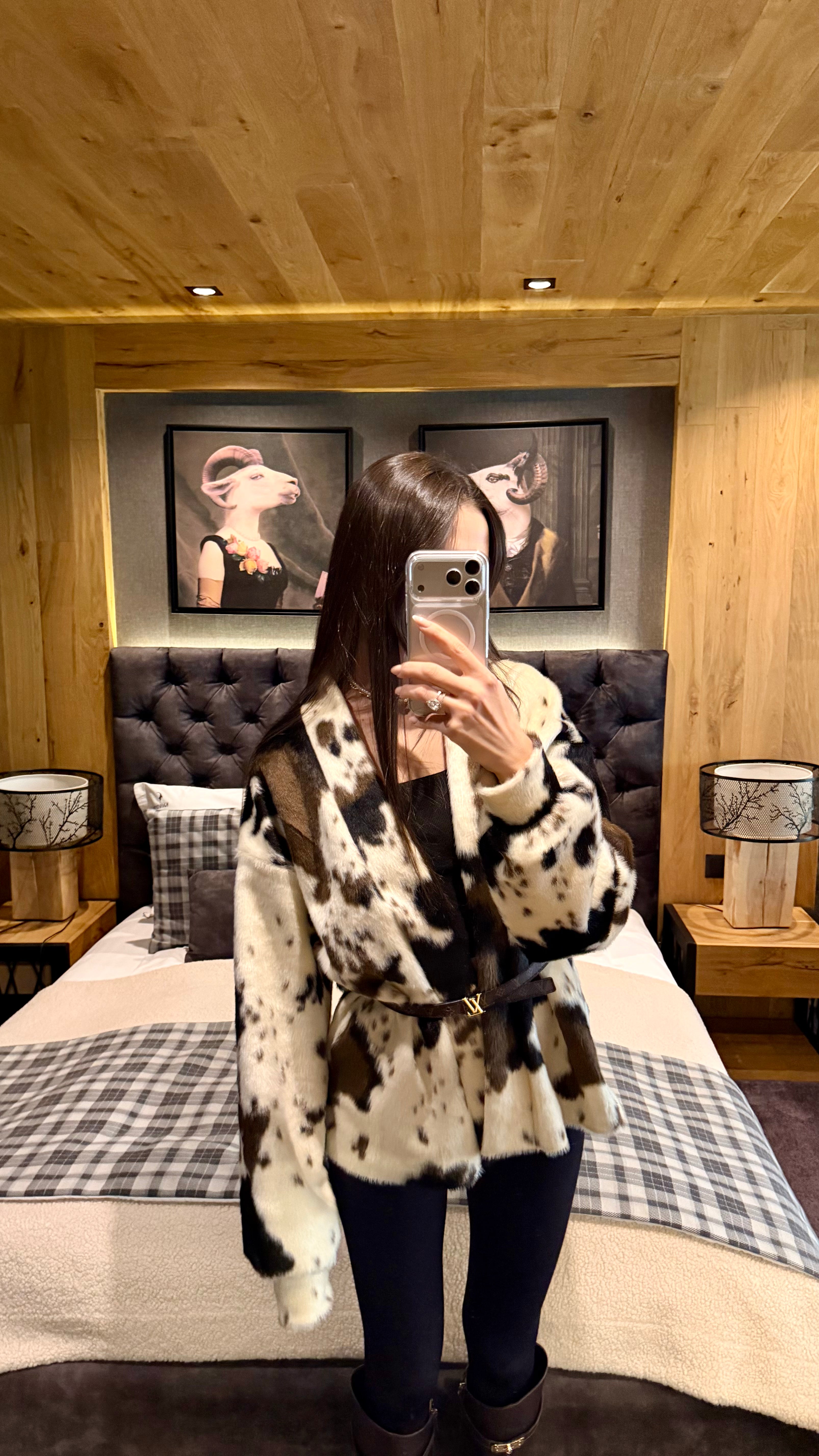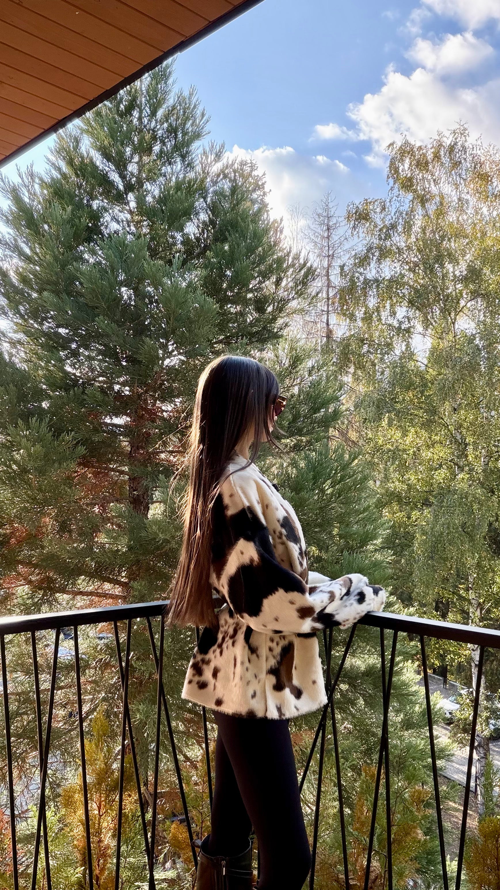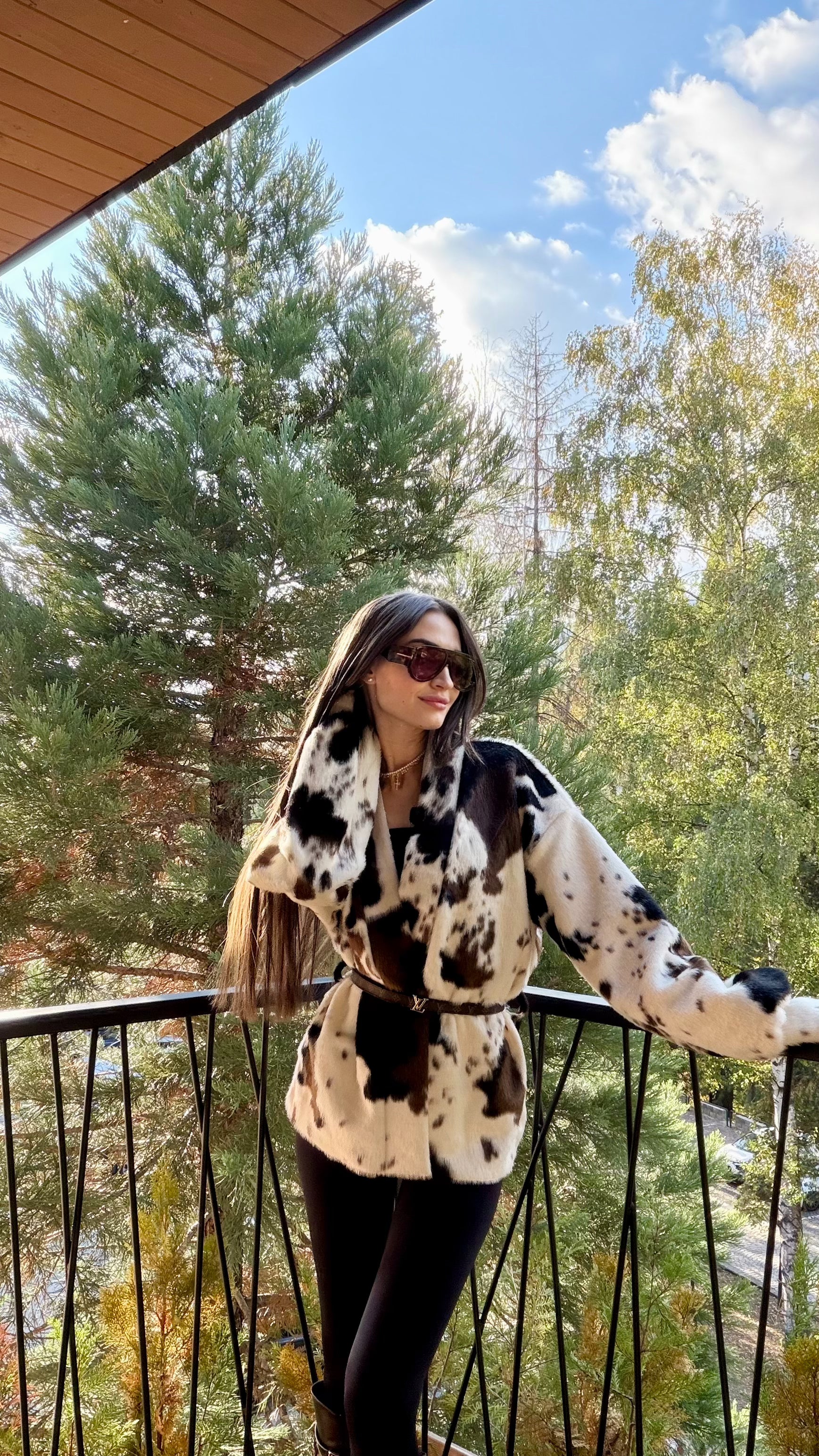 Късо палто от луксозен еко пух с ефектен animal принт. Мекият косъм осигурява топлина и комфорт, без утежняване. Класическа права линия с паднало рамо и обемна яка. Коланът подчертава талията и позволява индивидуално прилягане – носете свободно разкопчано за relaxed визия или пристегнато за елегантен силует. Перфектно за градски стил и вечерни излизания. Един универсален размер.