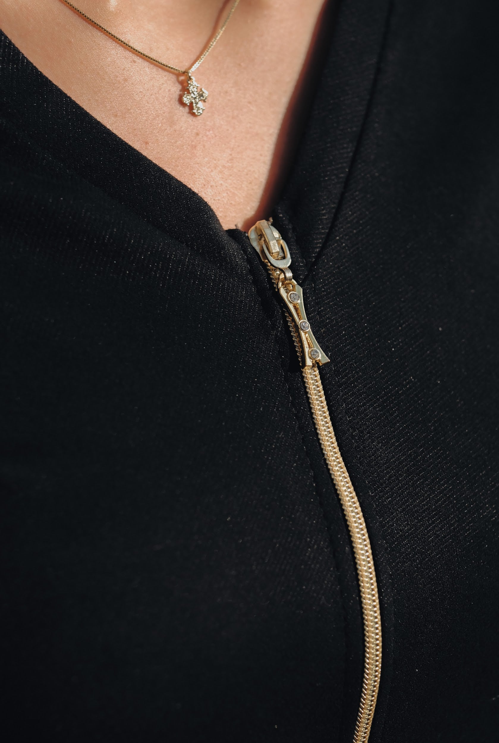 Закопчаване: метален цип отпред на топа