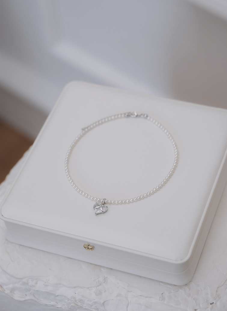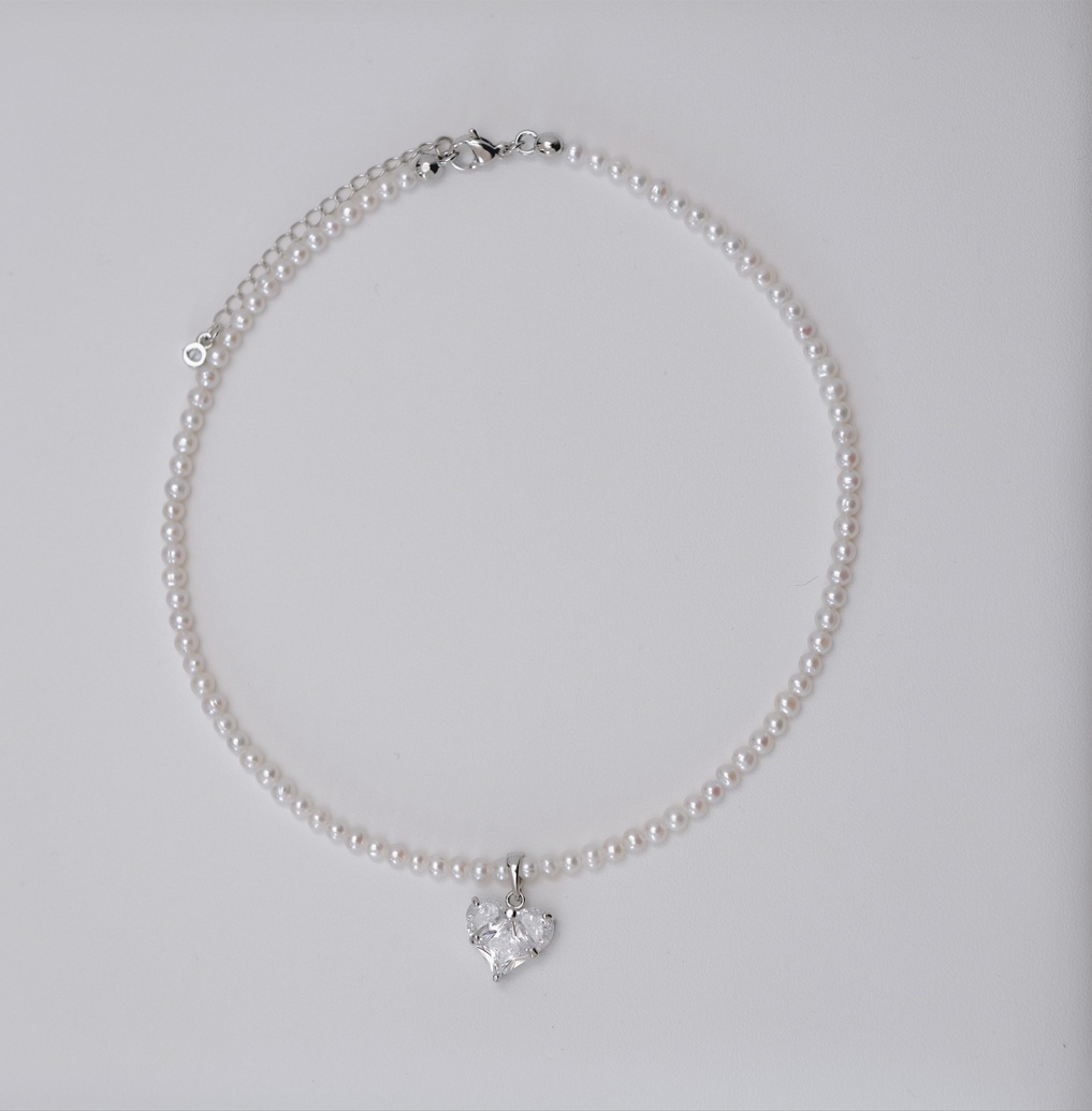 Колие от перли с висулка сърце с циркон