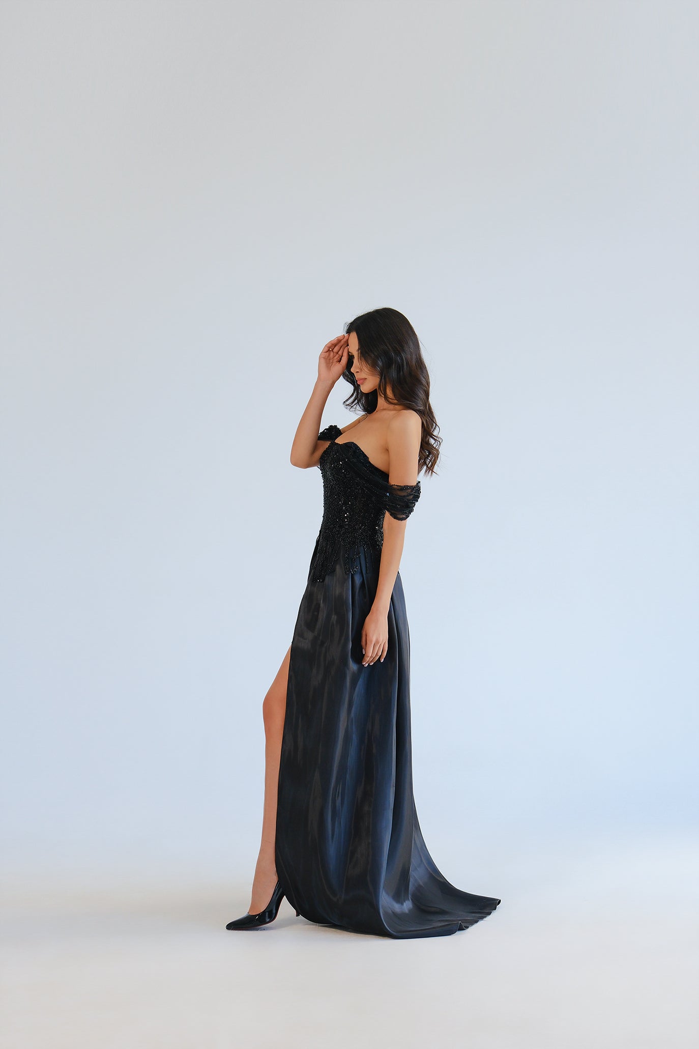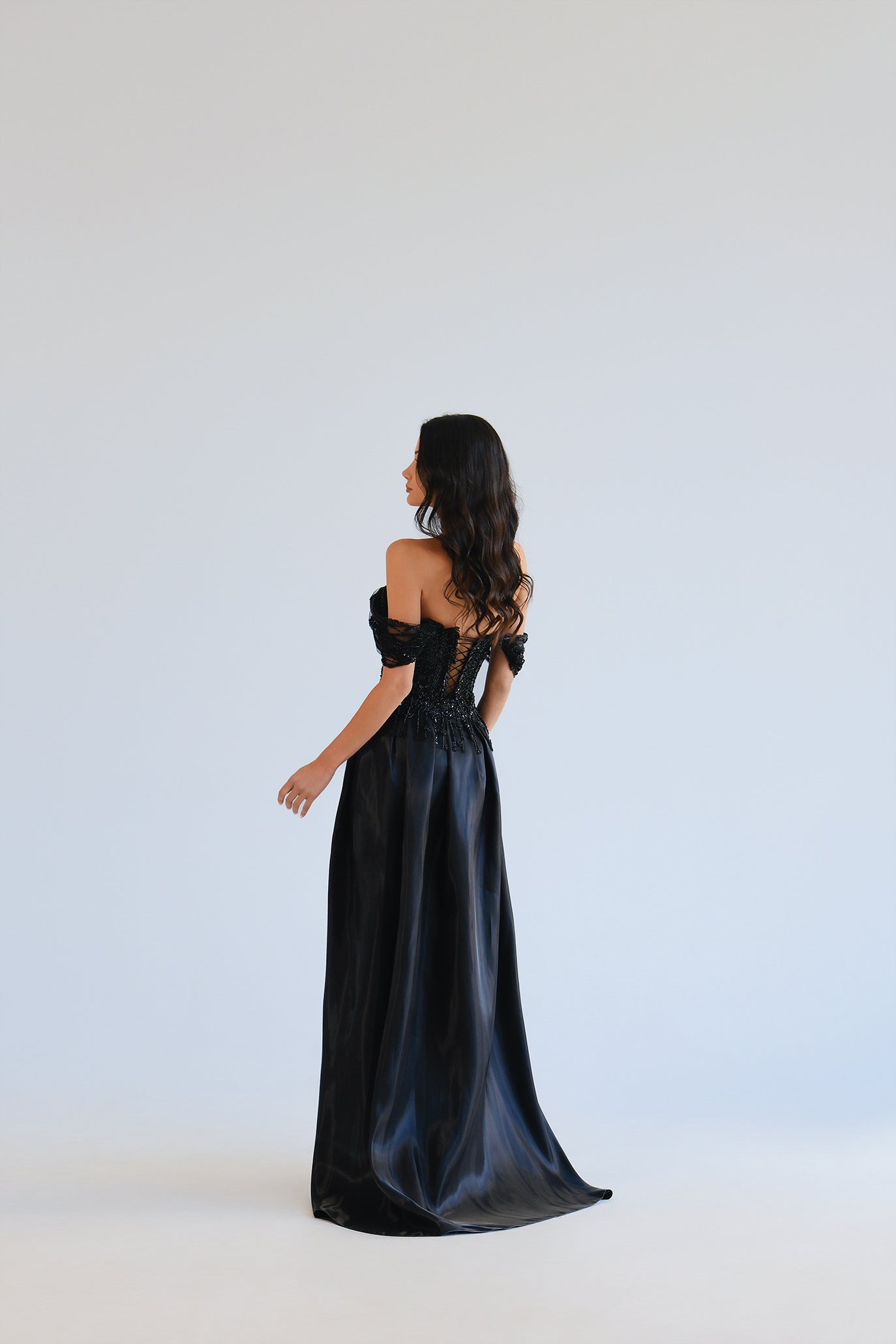 Официална рокля със свалящ се шлейф в черно: Olysséa