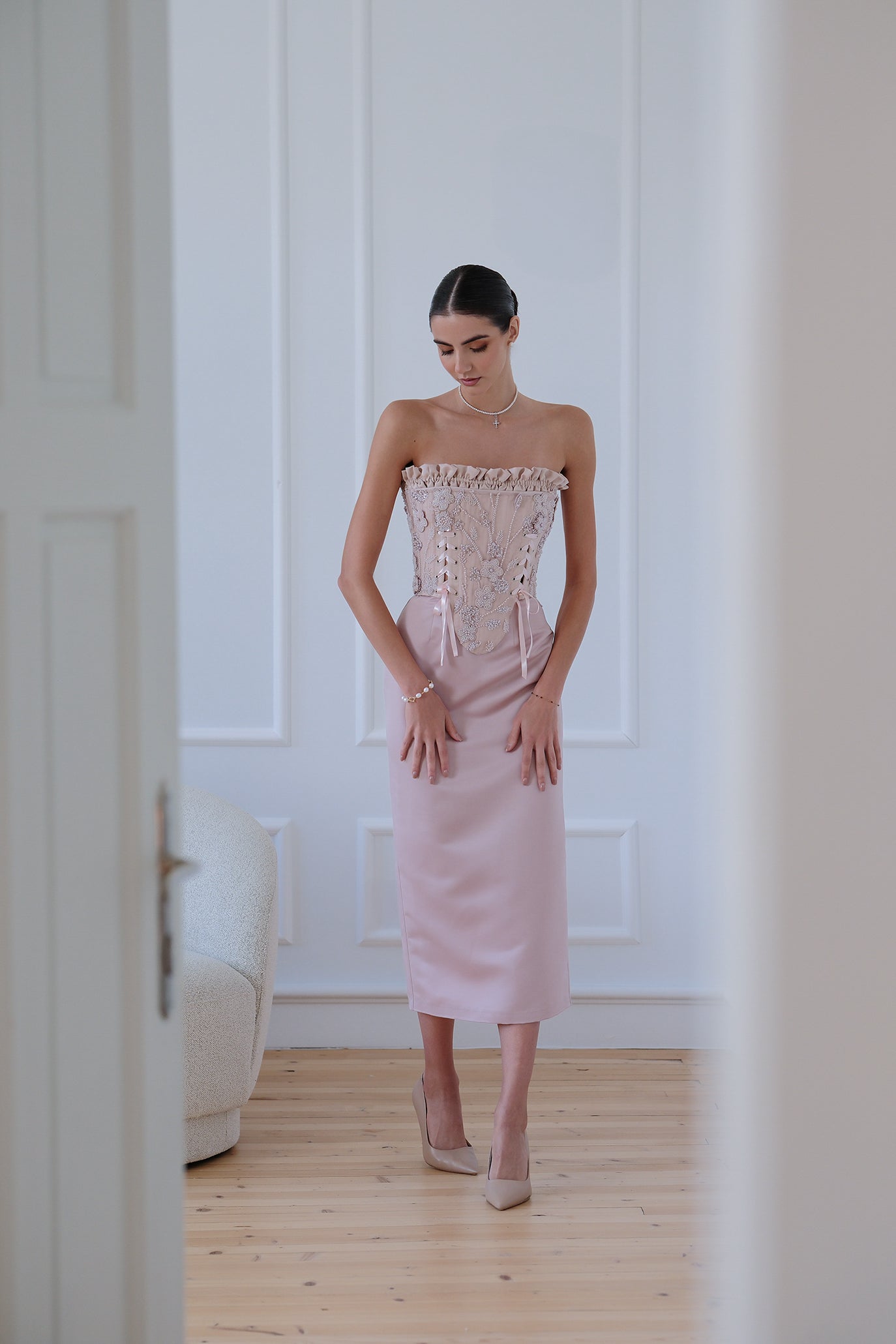 Пола за модерна, женствена версия. Полата молив е от специална плътна непрозираща материя, която оформя и подчертава талията и извивките на тялото. Визуално издължава издължава силуета, благодарение на кройката с висока талия.