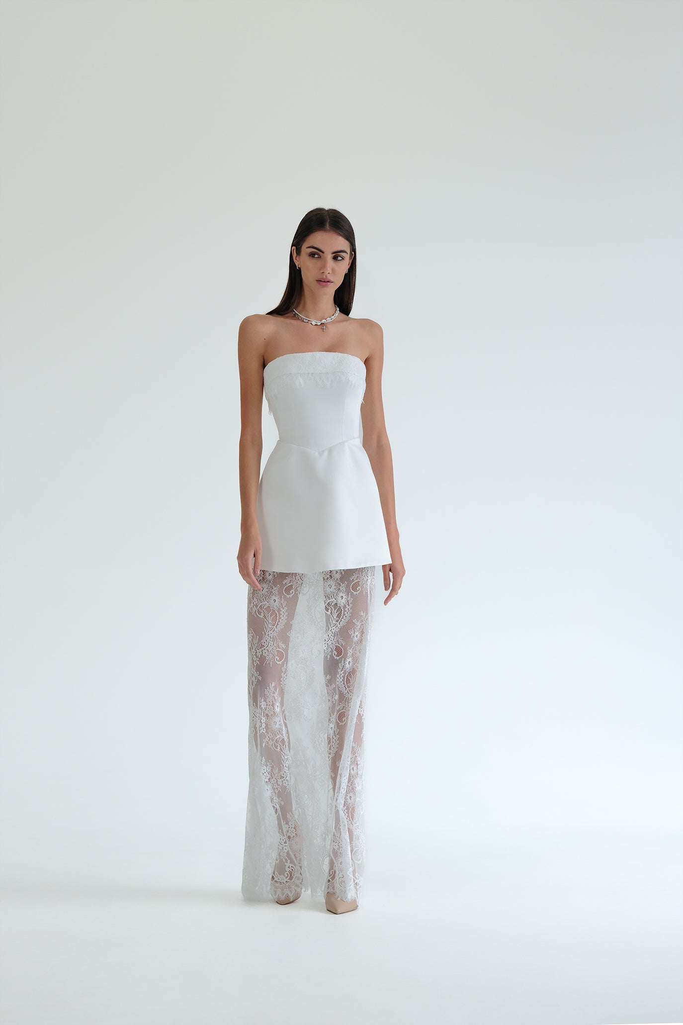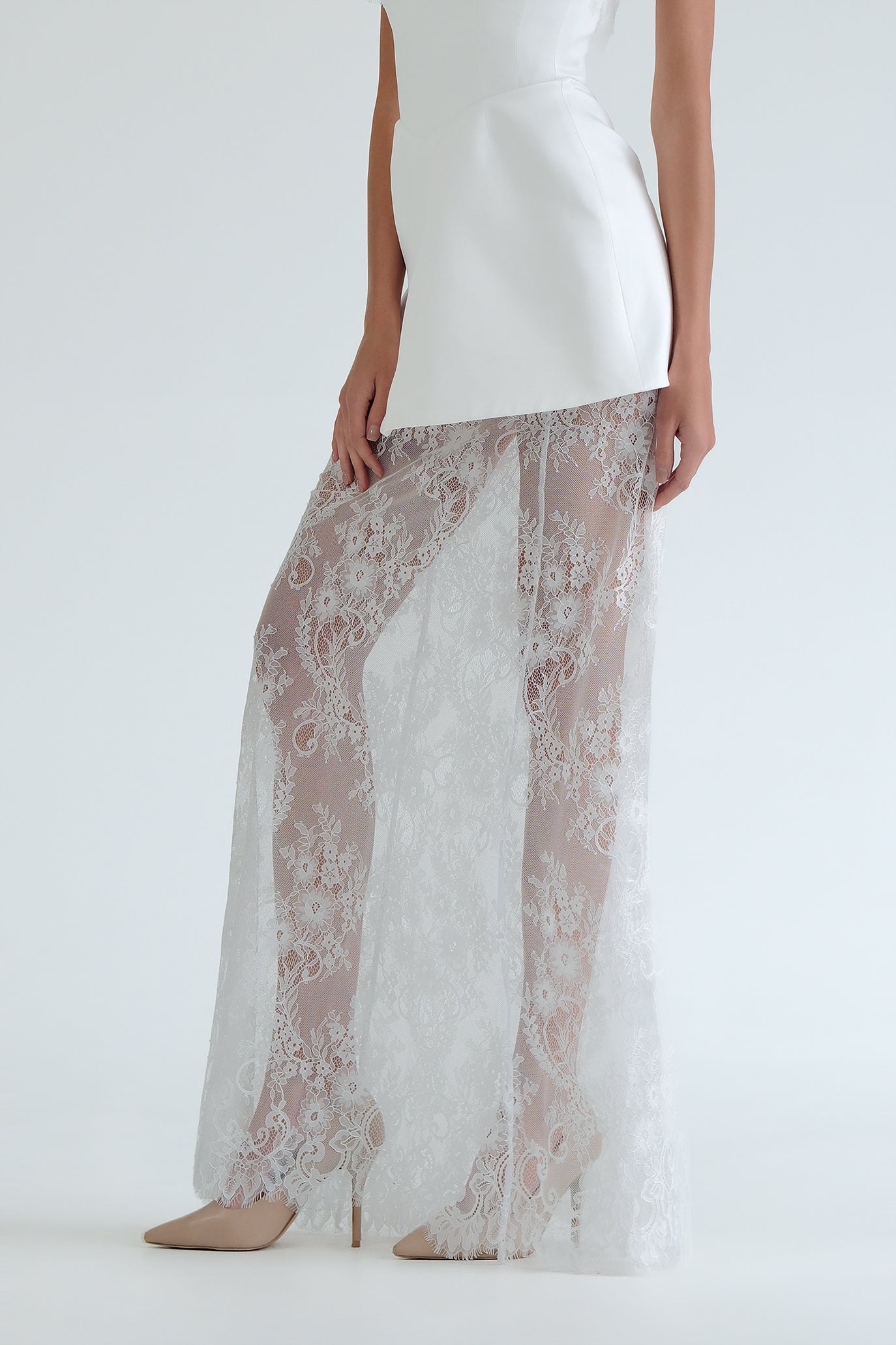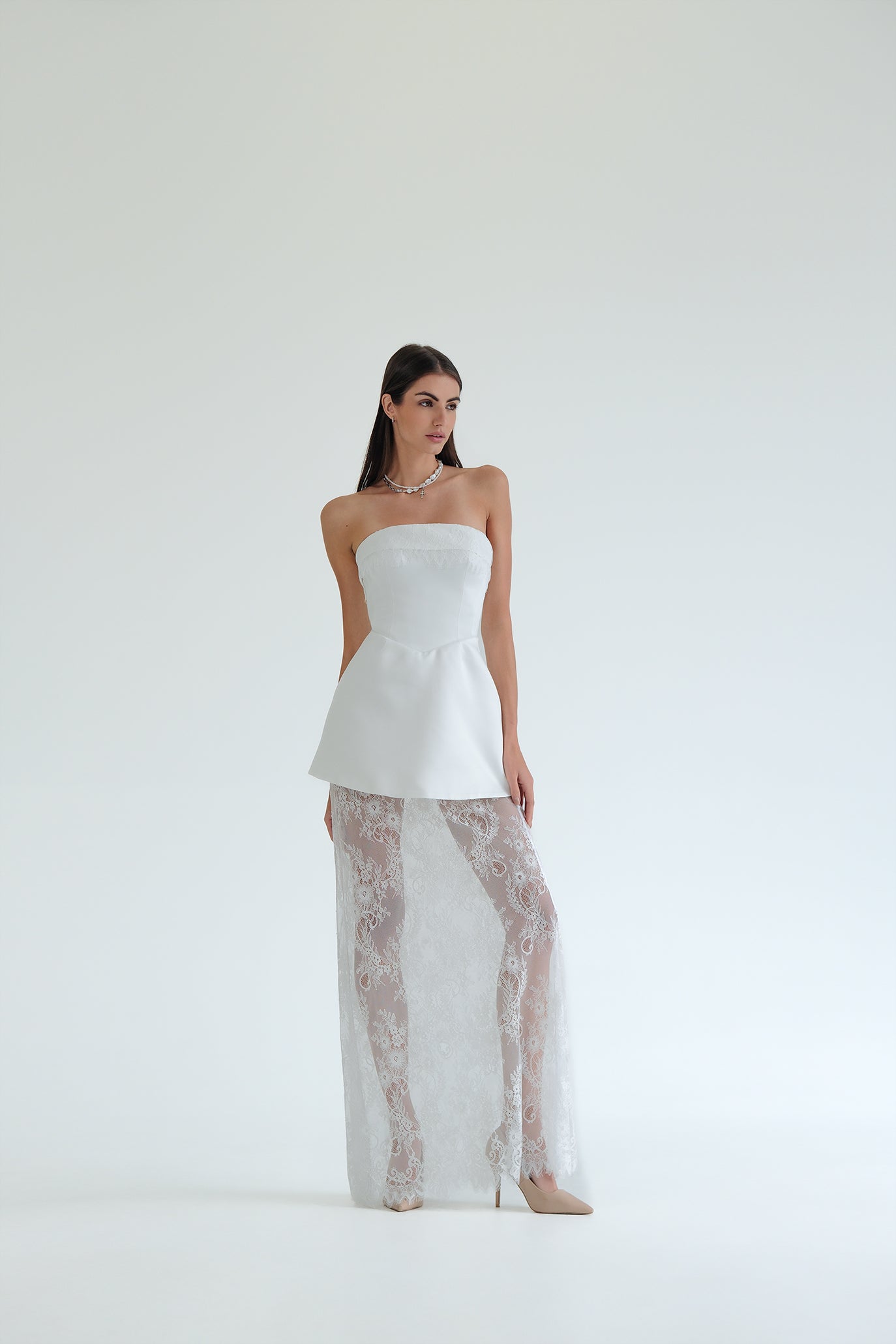 Рокля със сваляща се дантелена пола в бяло: Fabia
