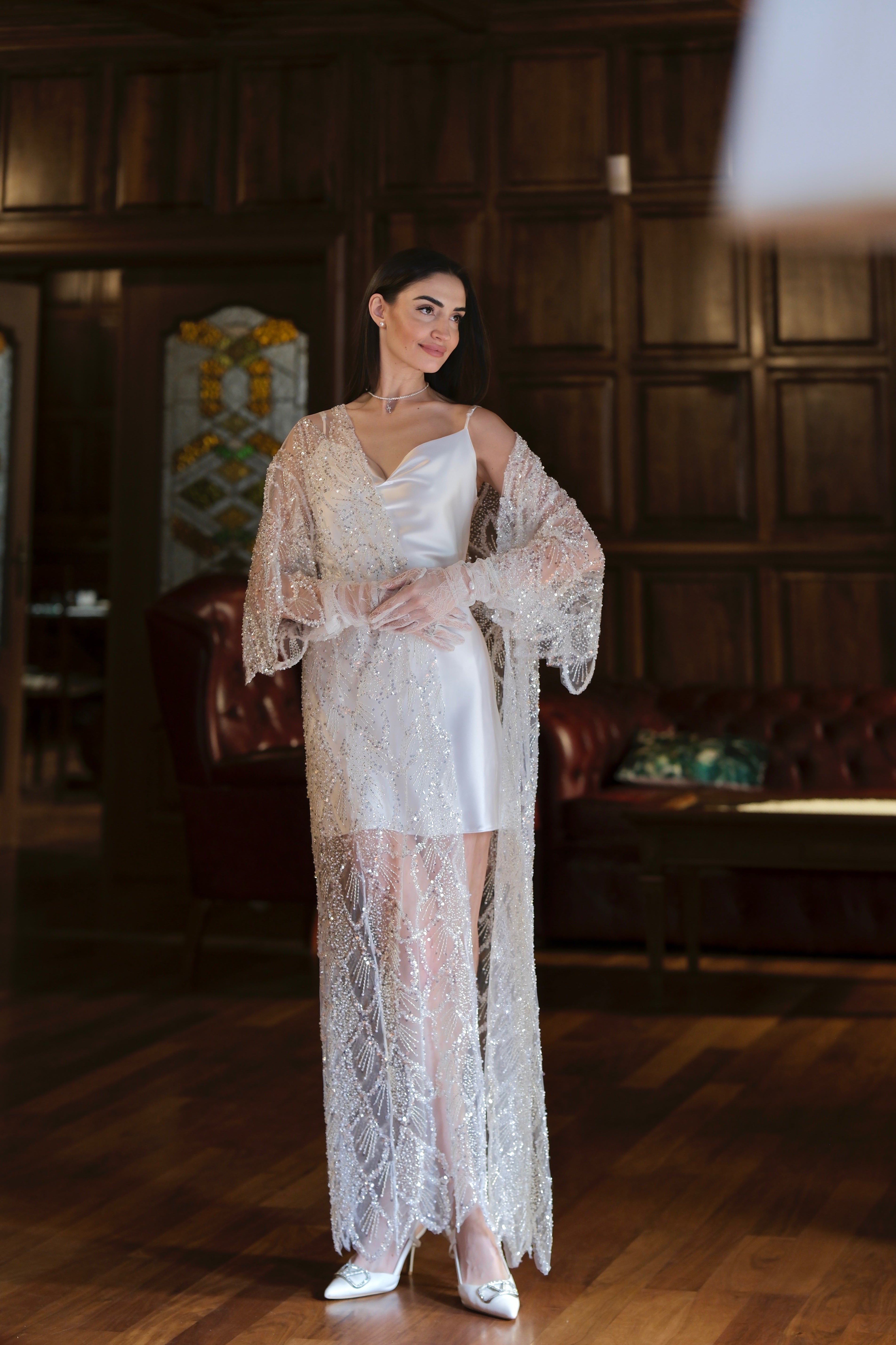 Ръчно изработена жилетка в бяло: Luxury Eve