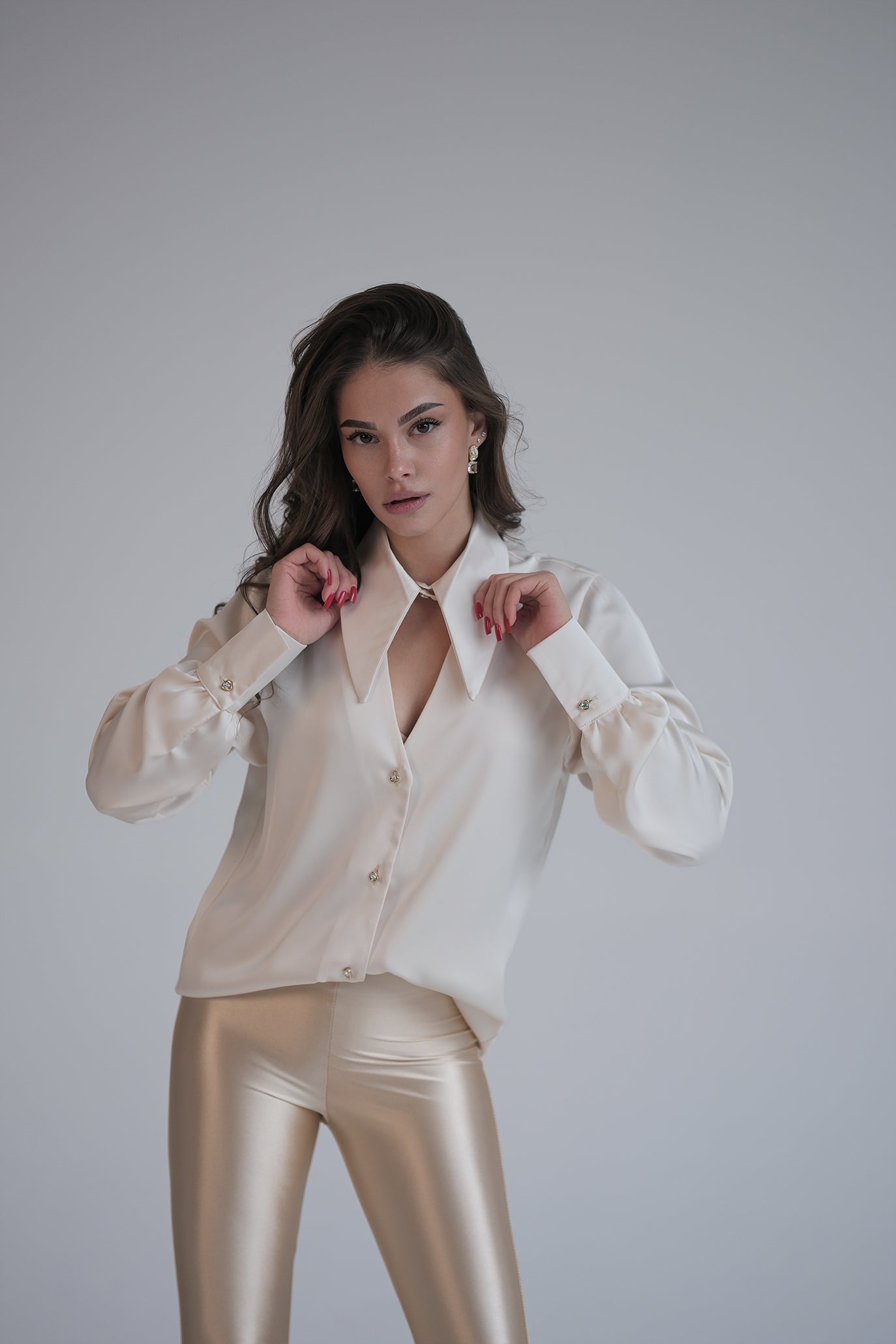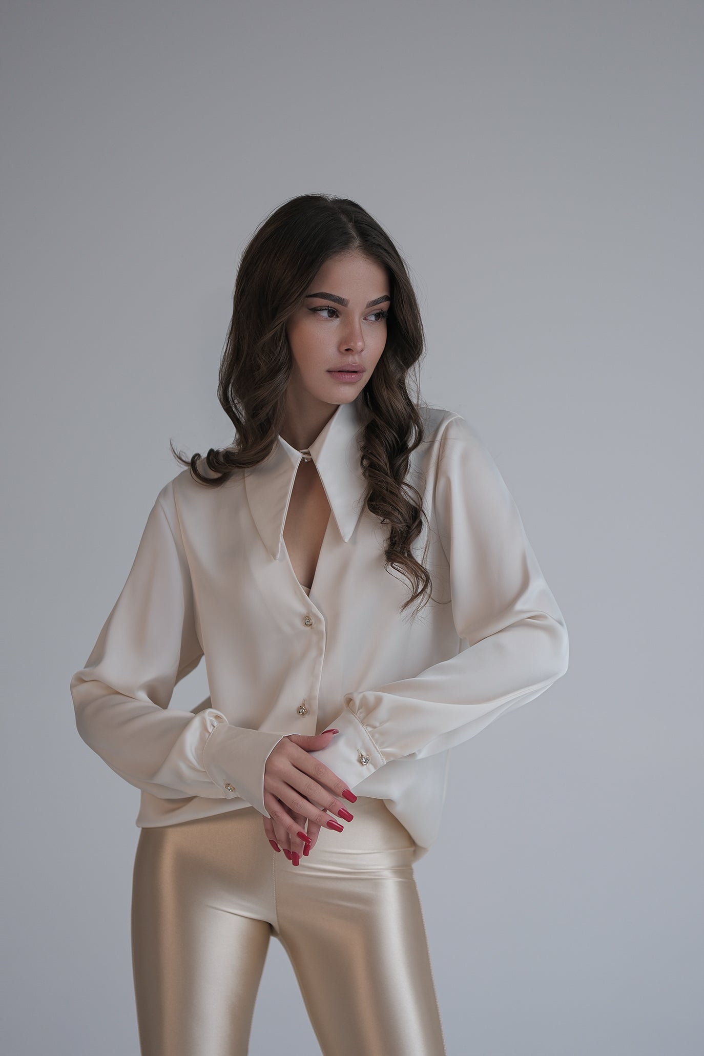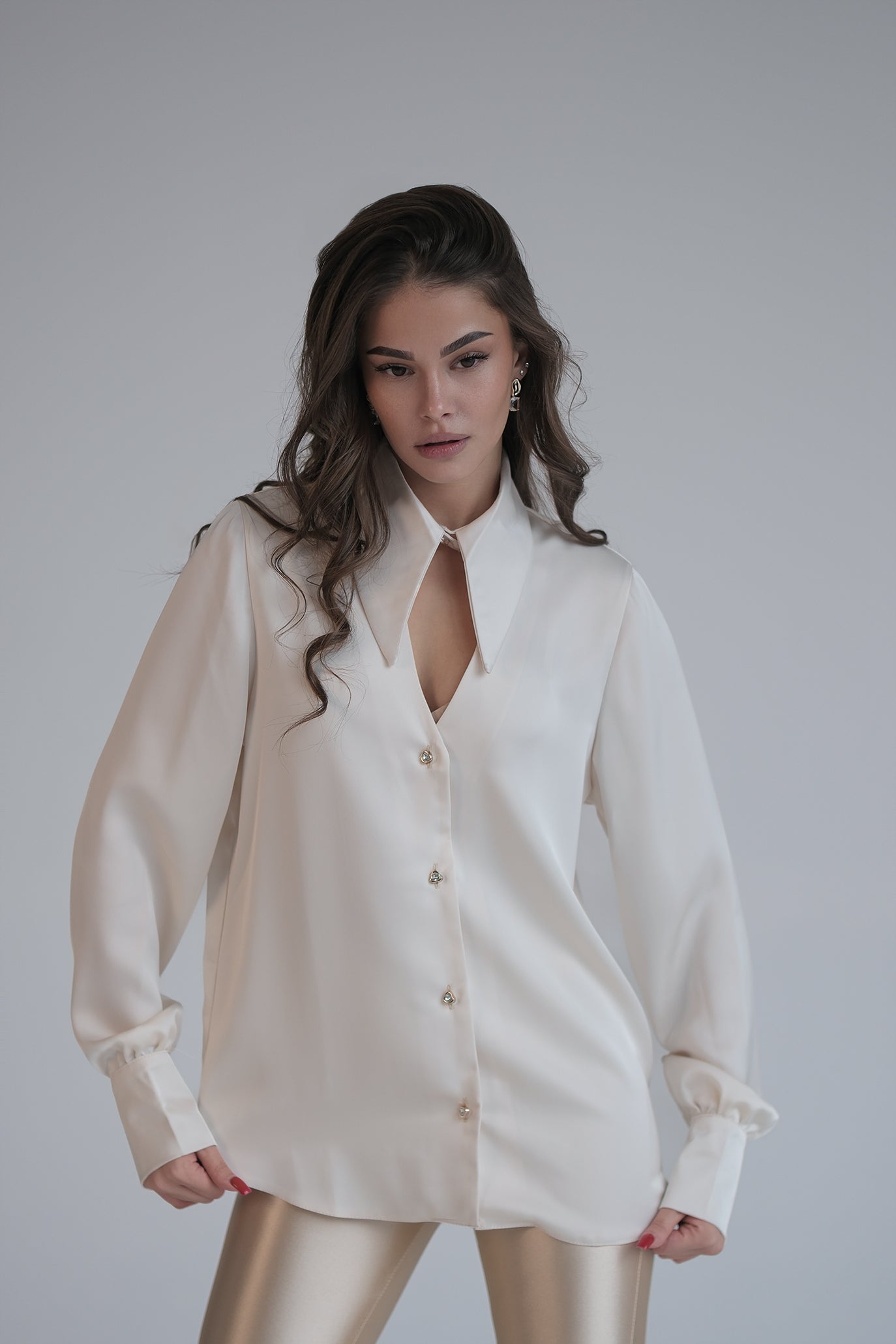 Сатенена риза в бежово: Cristine