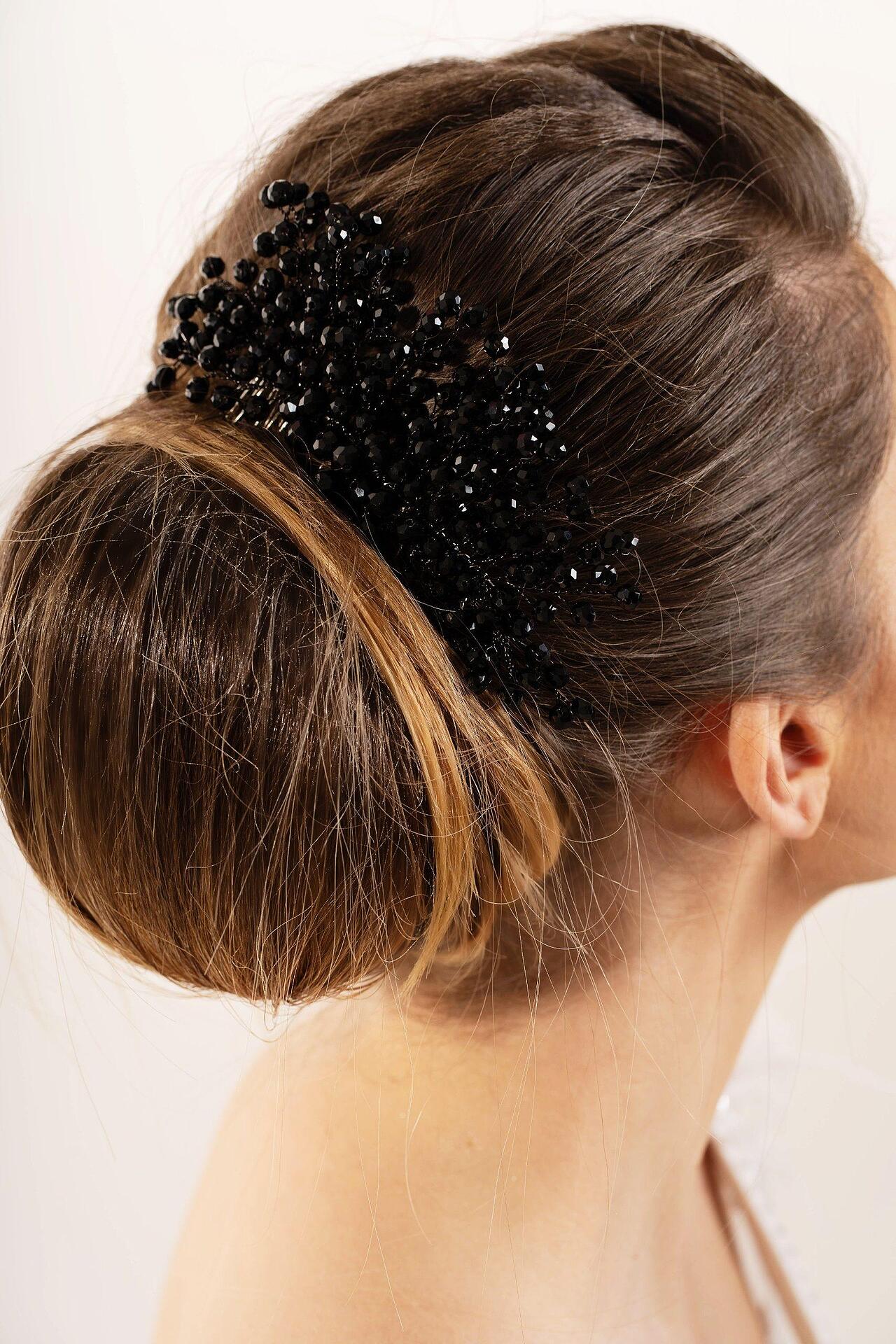 Accessory with faceted crystal beads. You can perfectly combine it with both loose and tied hair. A beautiful finish to your hairstyle. You can use this accessory for many occasions. It is handmade from high-quality materials.