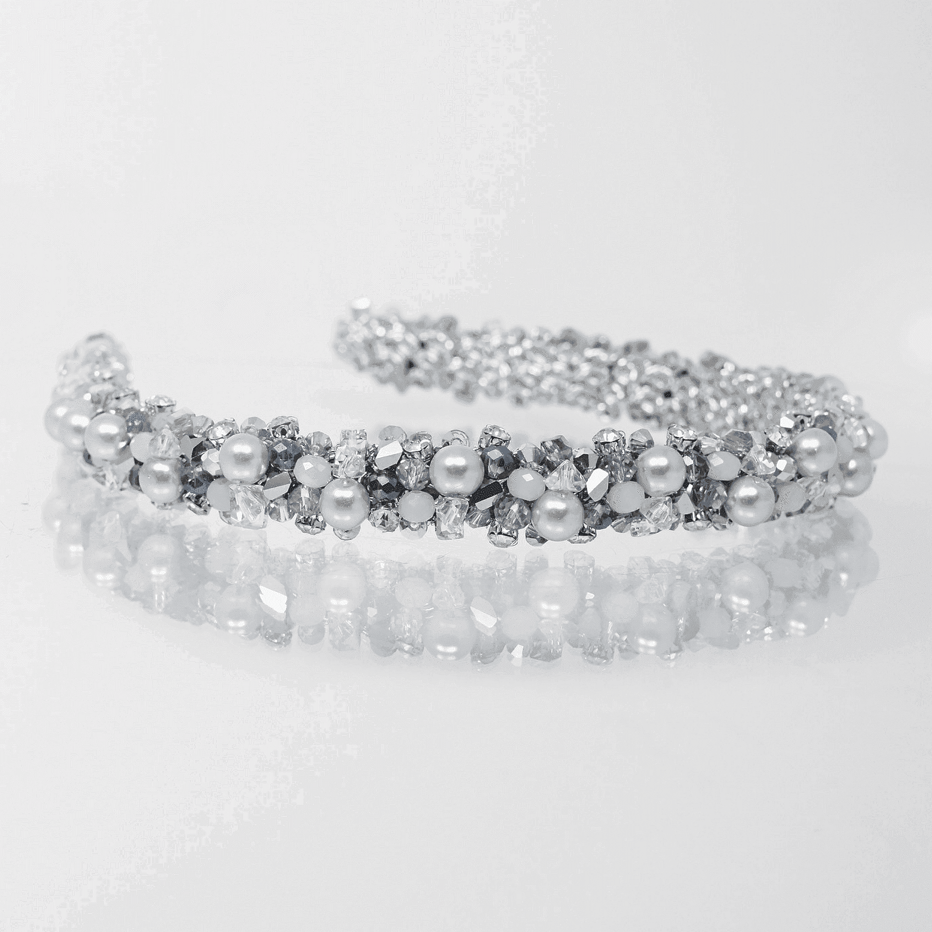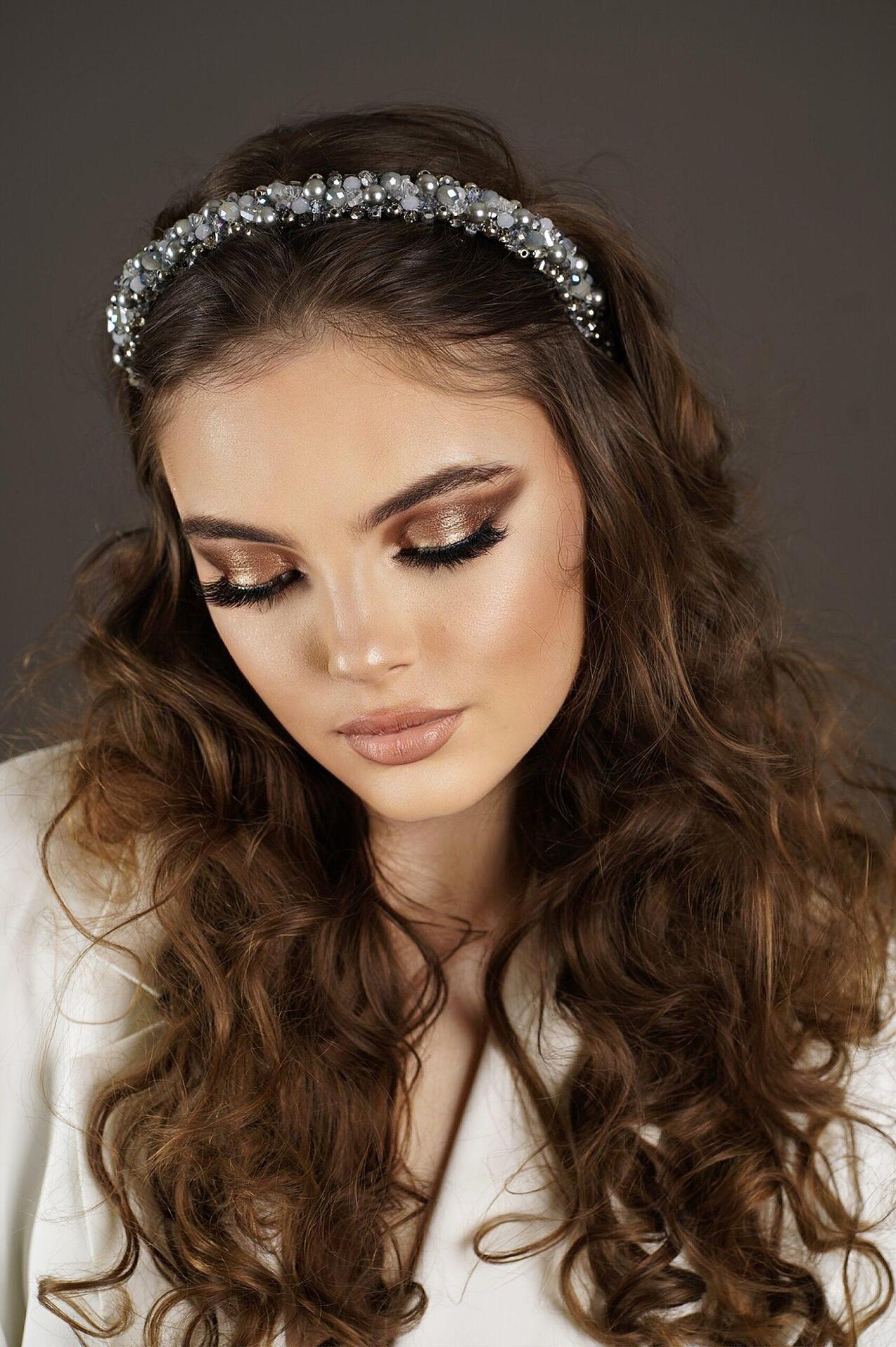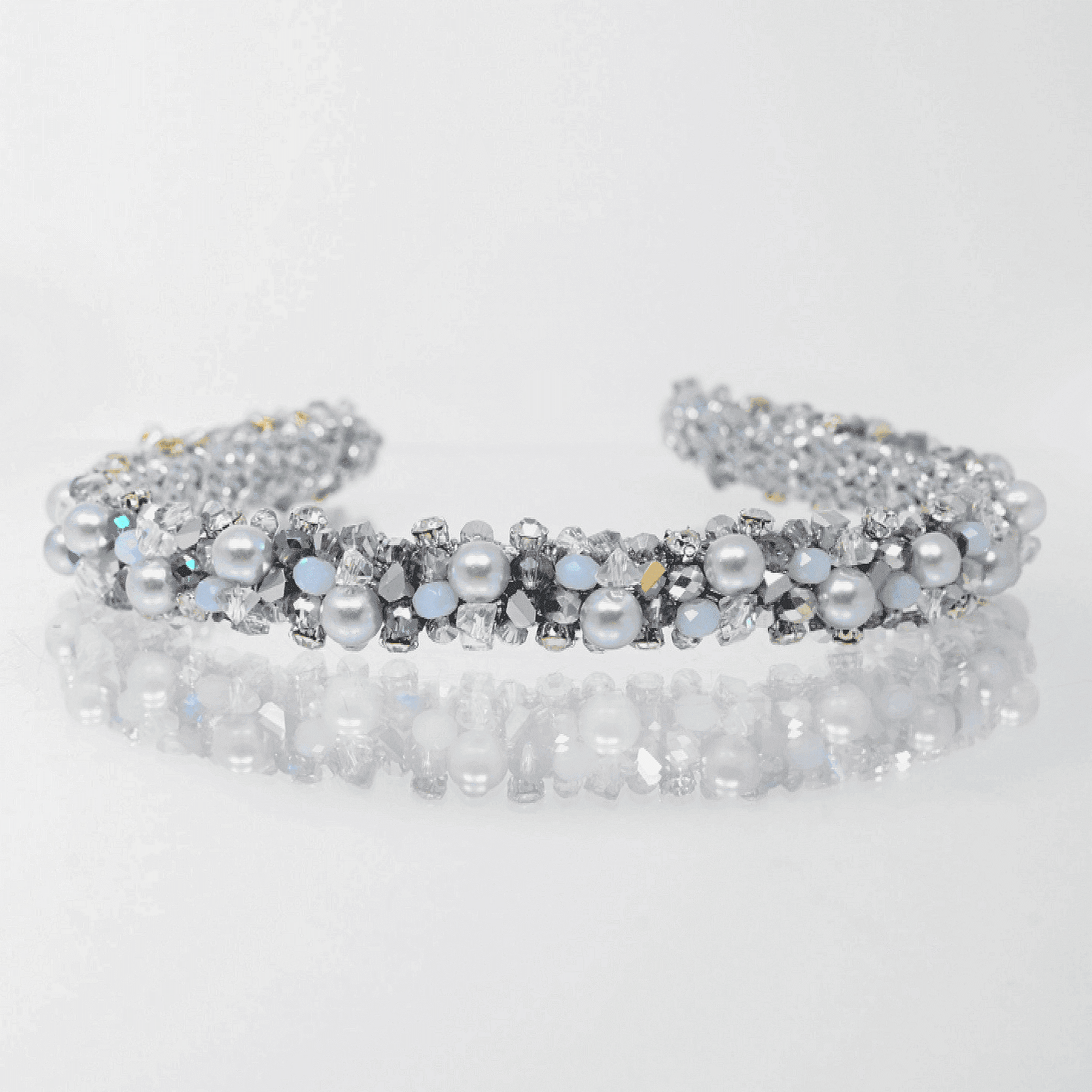 Tiara sewn entirely with crystals and beads. Delicate and light. A hard cord was used that holds the crystals firmly and tightly at the base of the tiara. Handmade from high quality materials. The size can be adjusted to be comfortable for everyone. About 2 cm wide.
