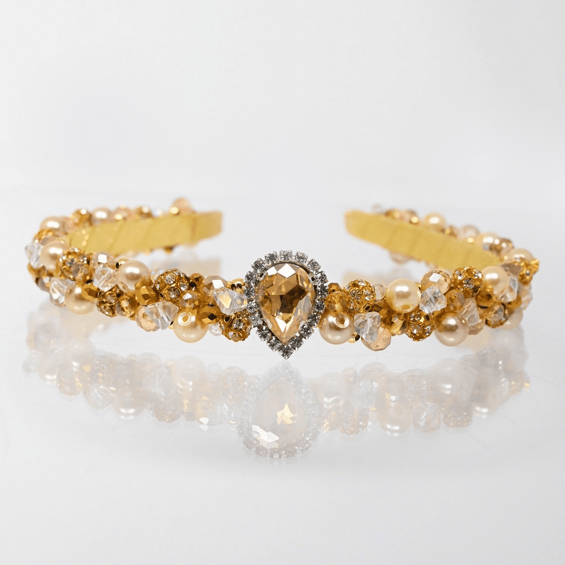 Tiara sewn entirely with crystals and beads. Delicate and light. A hard cord was used that holds the crystals firmly and tightly at the base of the tiara. Handmade from high quality materials. The size can be adjusted to be comfortable for everyone. About 2 cm wide.