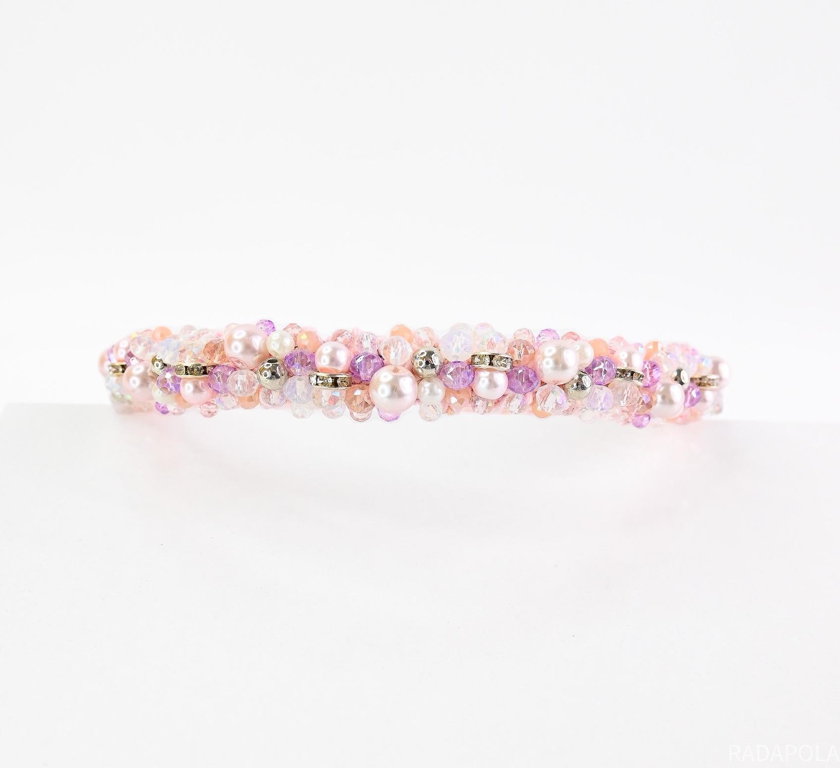 Tiara sewn entirely with crystals and beads. Delicate and light. A hard cord was used that holds the crystals firmly and tightly at the base of the tiara. Handmade from high quality materials. The size can be adjusted to be comfortable for everyone. About 2 cm wide.
