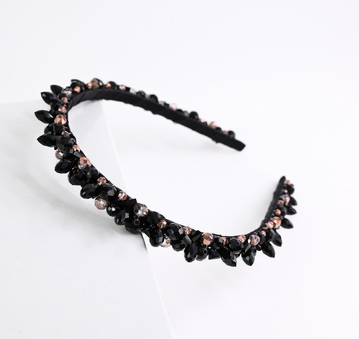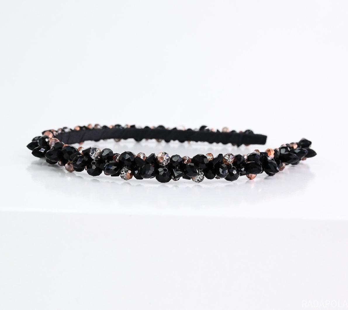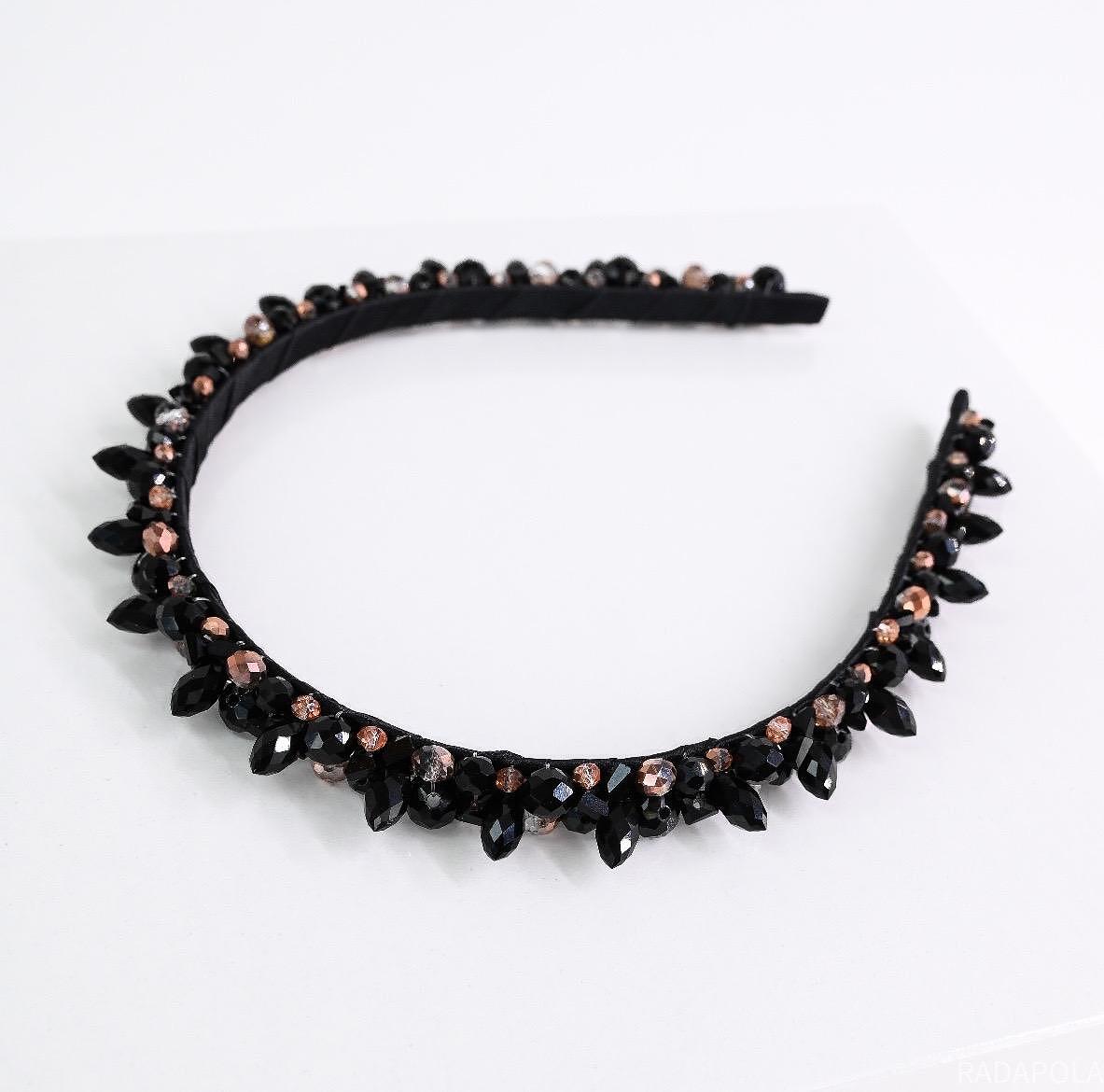 A delicate black tiara sewn with beads and crystals, a thick cord was used so that there is no danger of the material falling off, about 2 cm wide. Suitable for all occasions. The size can be adjusted to your head to be comfortable for everyone.