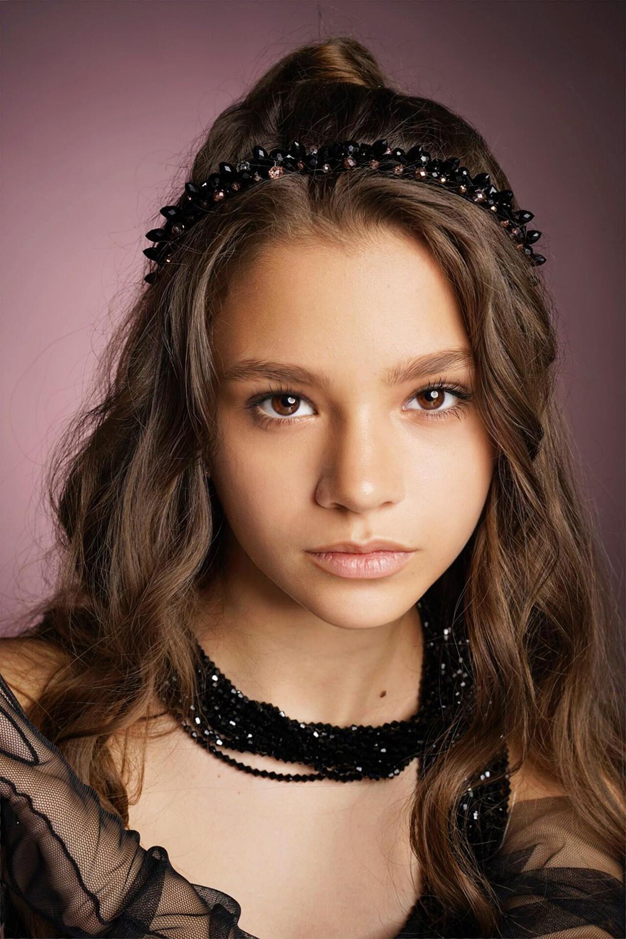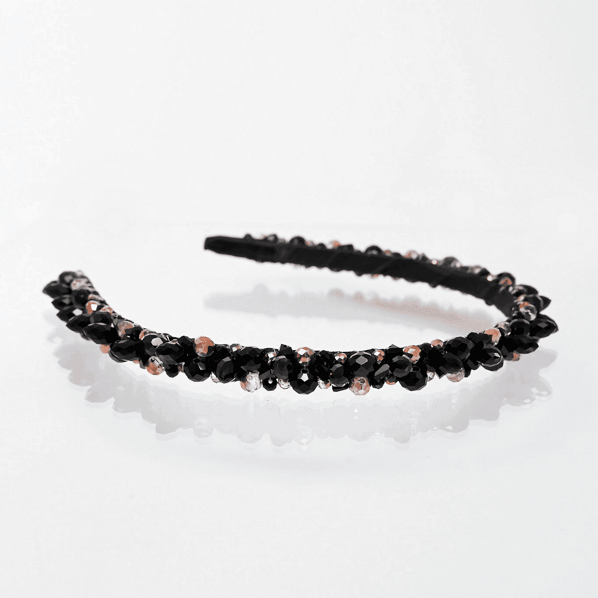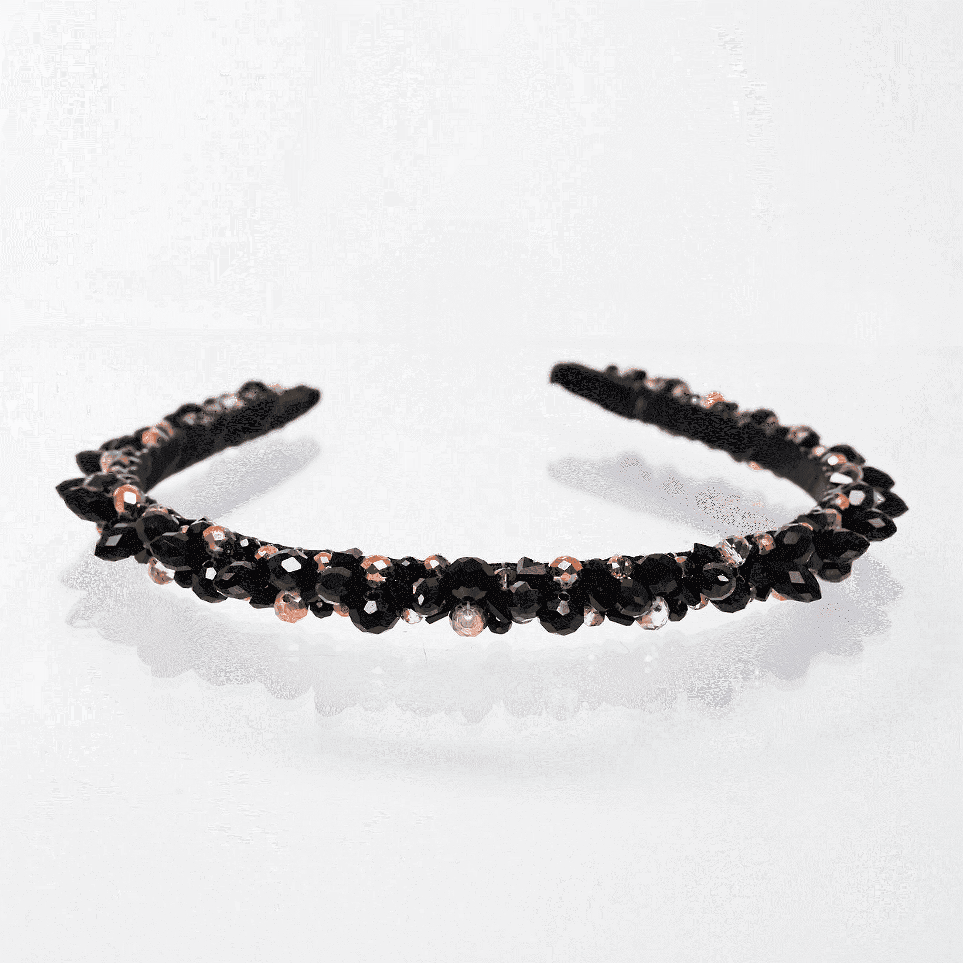 A delicate black tiara sewn with beads and crystals, a thick cord was used so that there is no danger of the material falling off, about 2 cm wide. Suitable for all occasions. The size can be adjusted to your head to be comfortable for everyone.