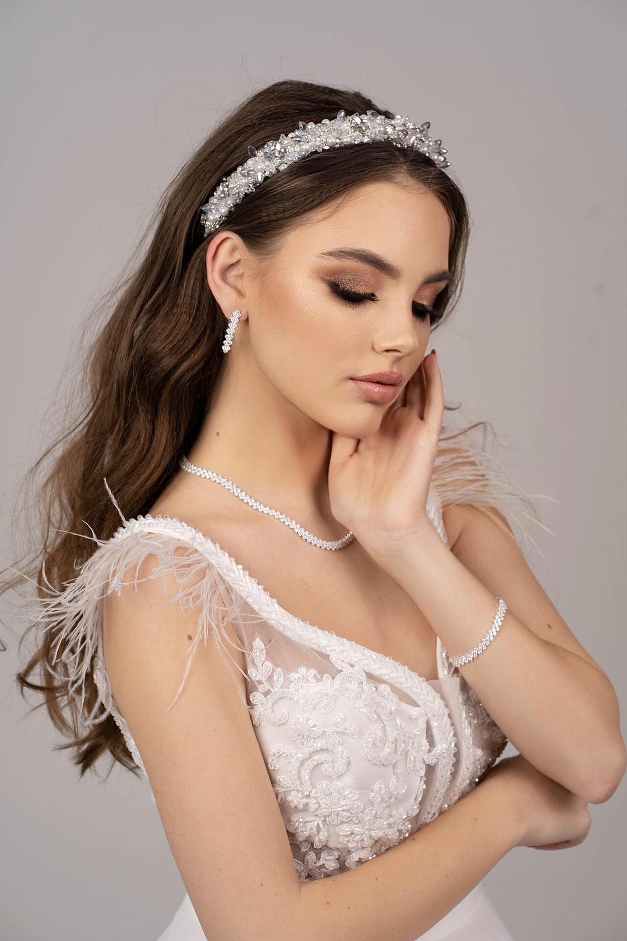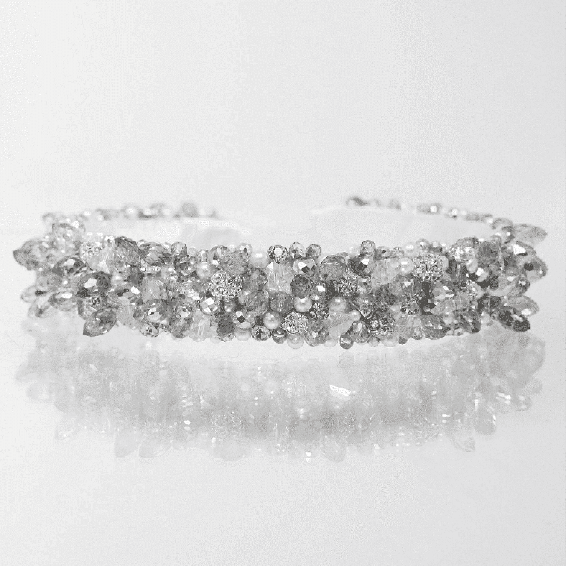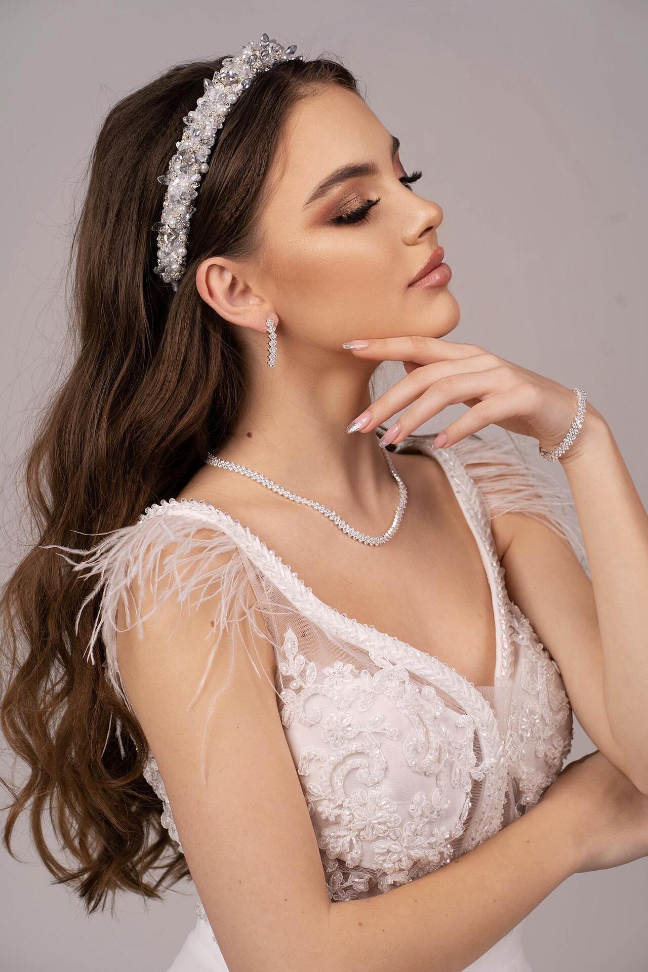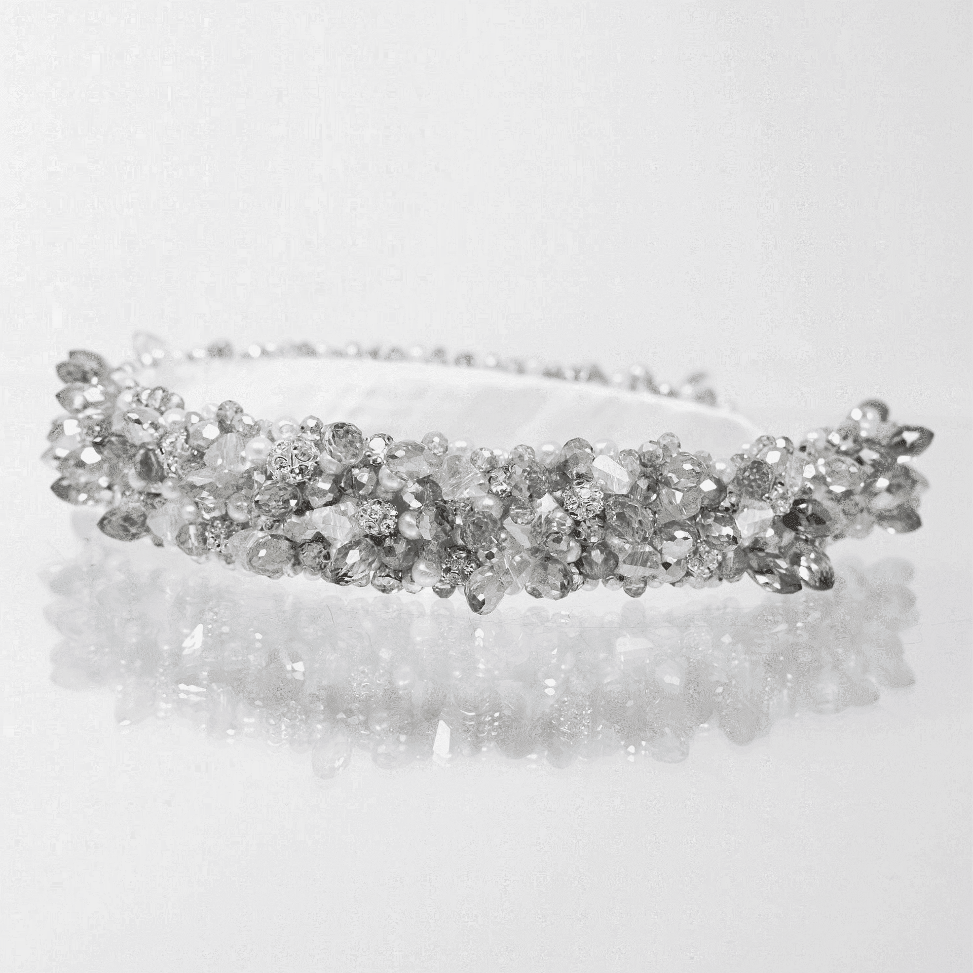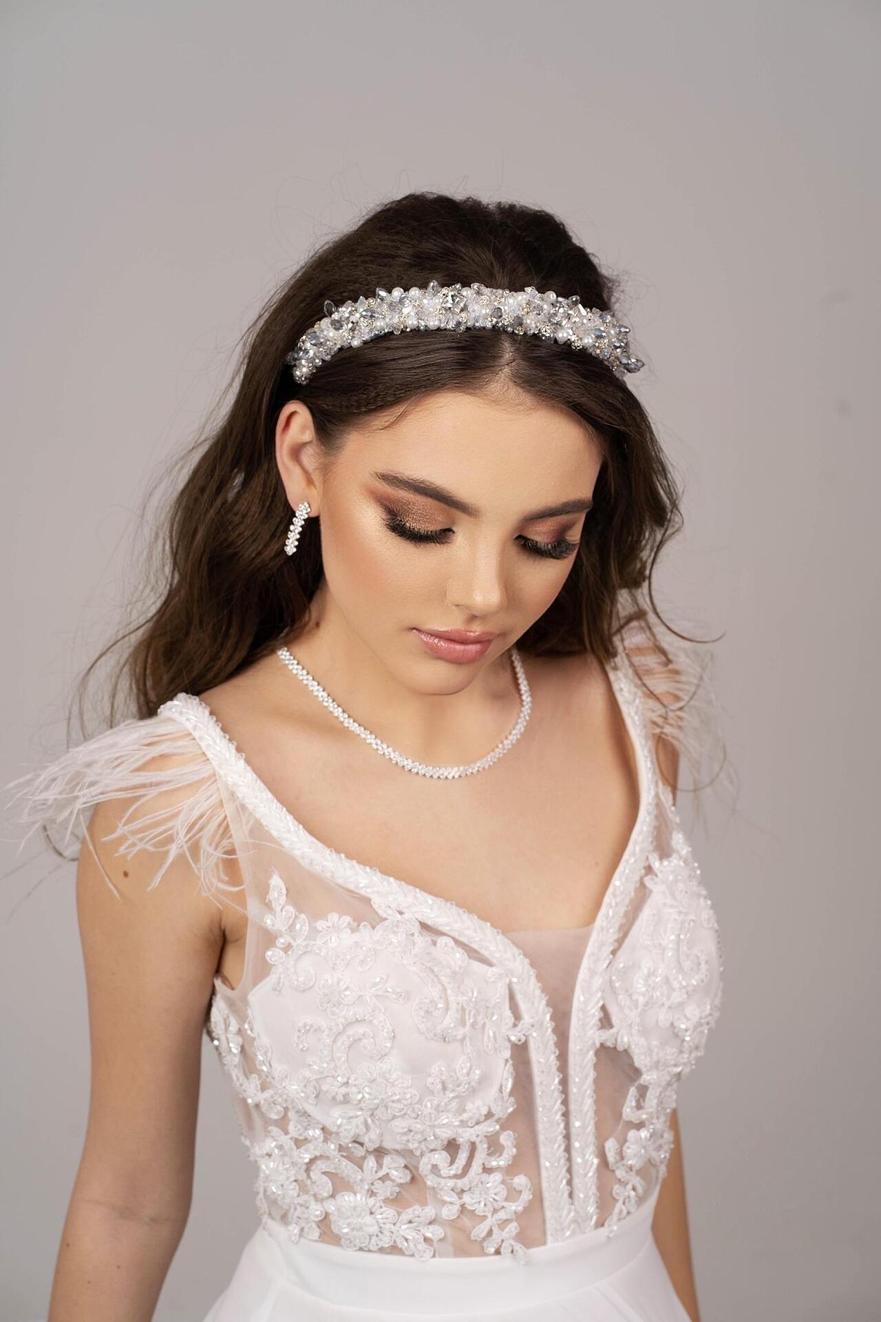 Tiara sewn entirely with crystals and beads. Delicate and light. A hard cord is used that holds the crystals firmly and tightly at the base of the tiara. Handmade from high-quality materials. The size is universal and cannot be adjusted.