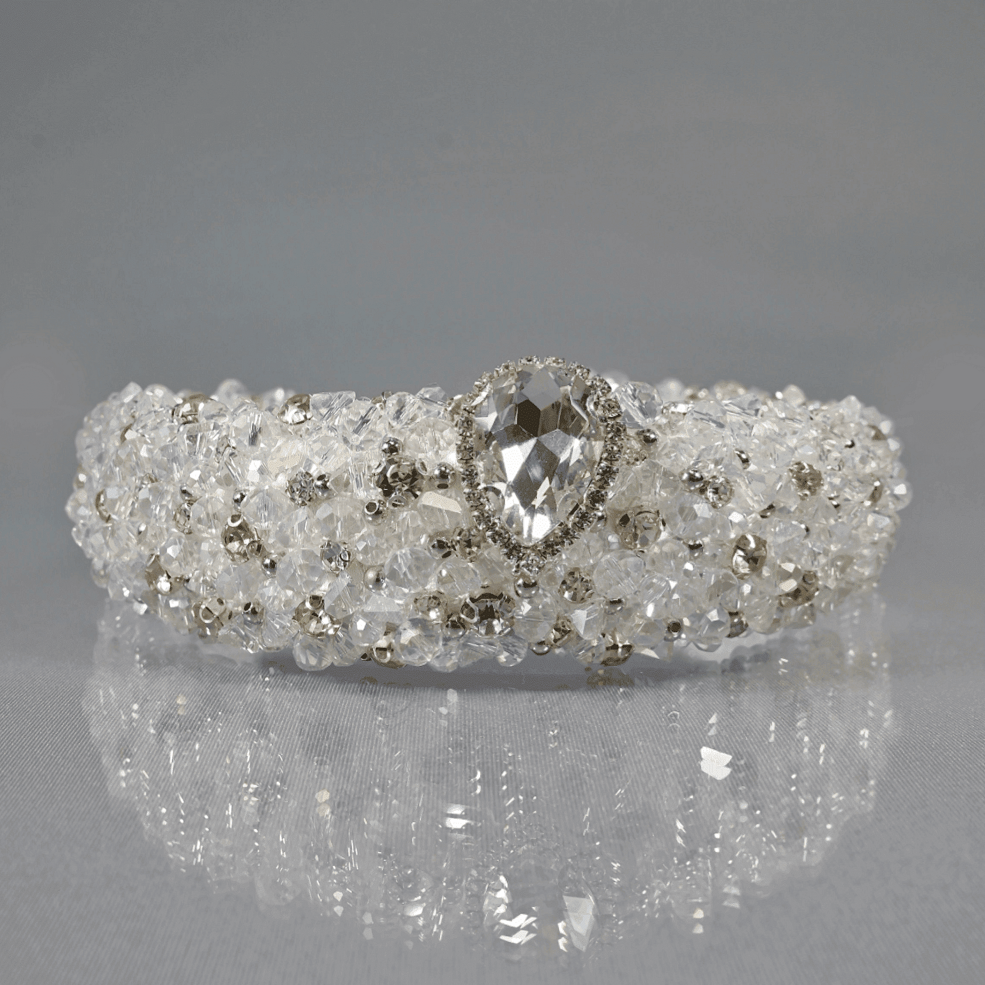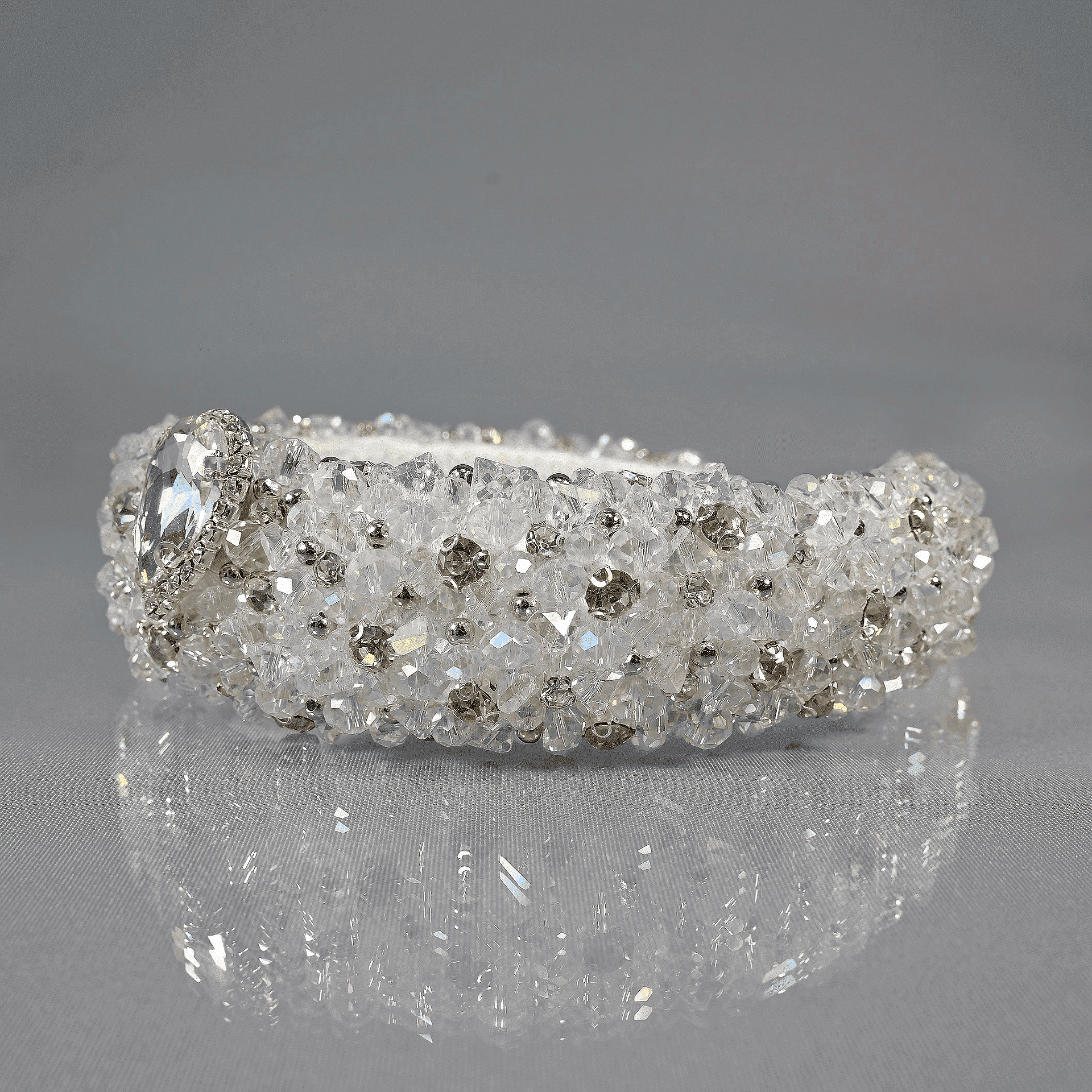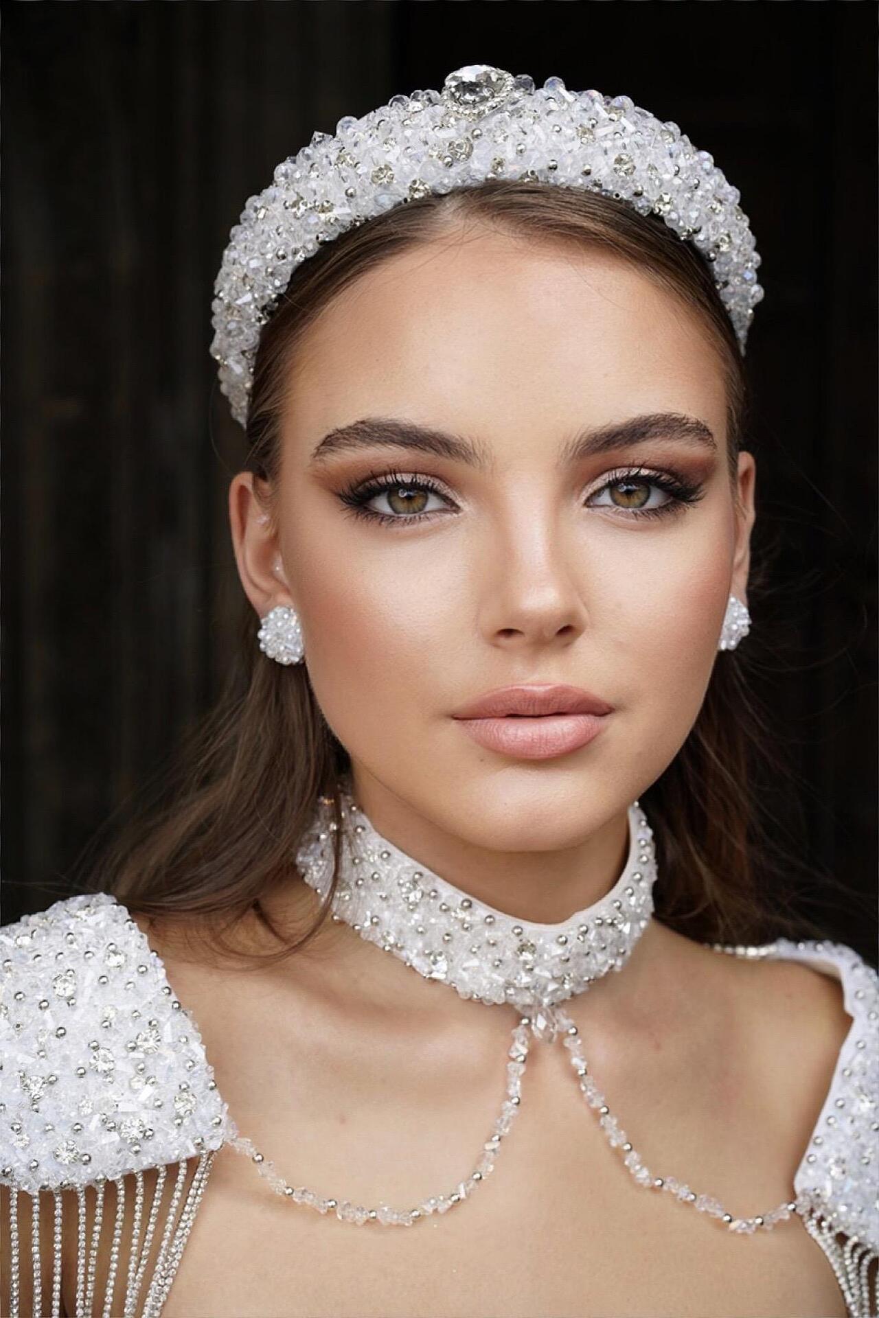 Tiara sewn entirely with crystals and beads. Delicate and light. A hard cord is used that holds the crystals firmly and tightly at the base of the tiara. Handmade from high-quality materials. The size is universal and cannot be adjusted.