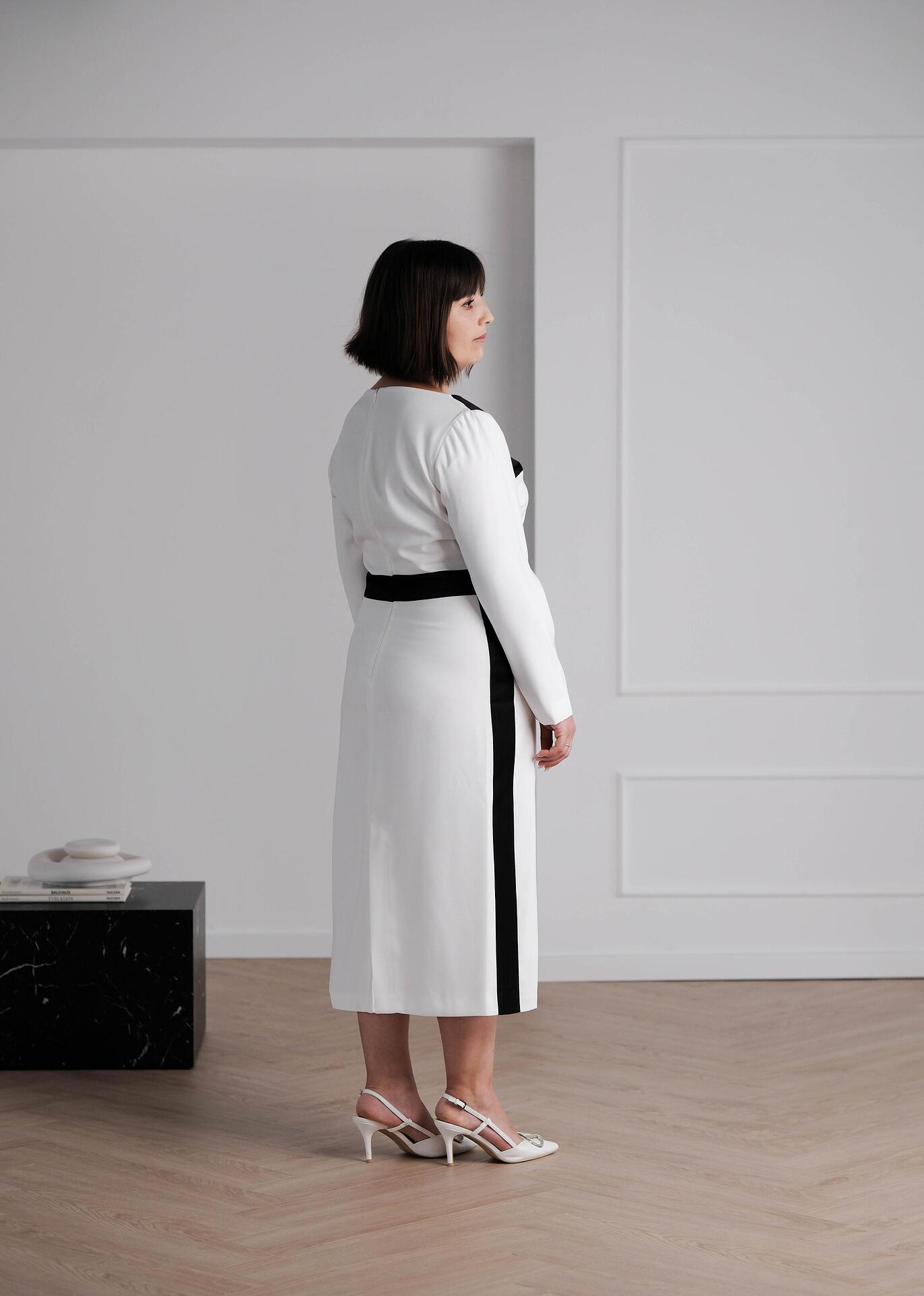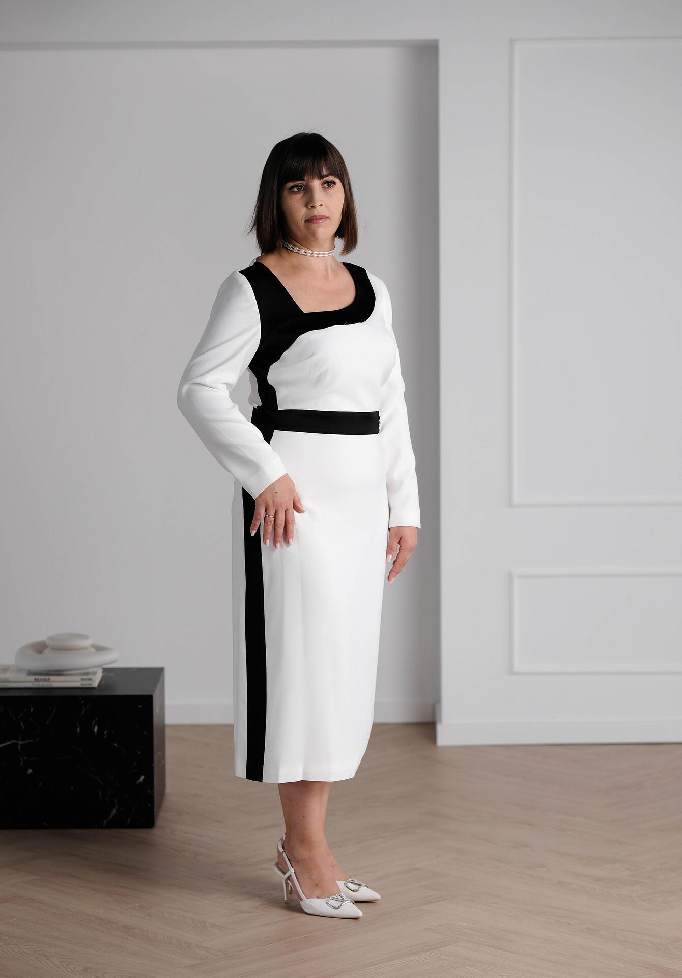 A dress with a clean design that provides comfort and freedom of movement, while shaping the silhouette. The long sleeves and mid-length give the model a delicate and elegant look. Made of polyester, with a jersey lining.