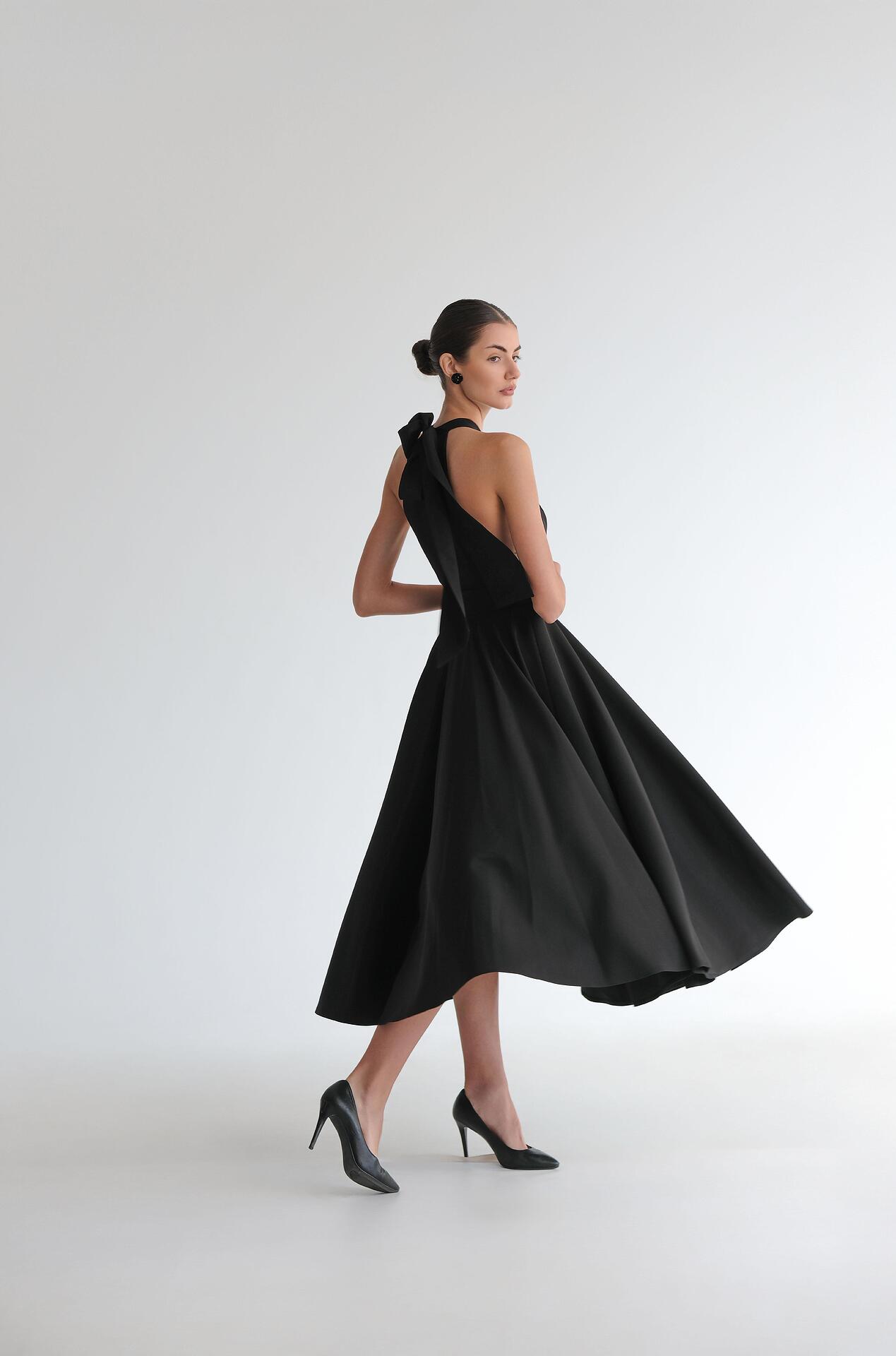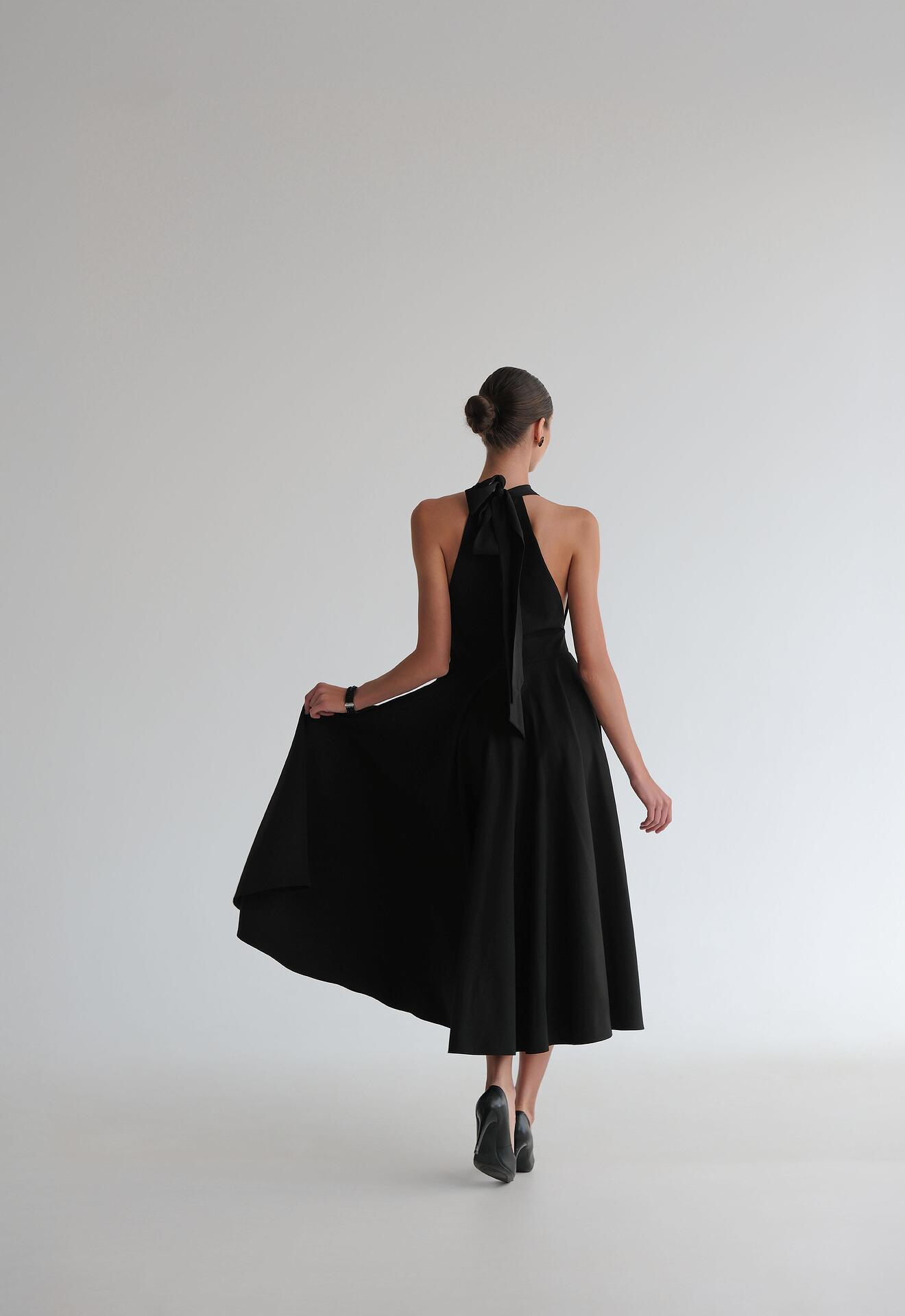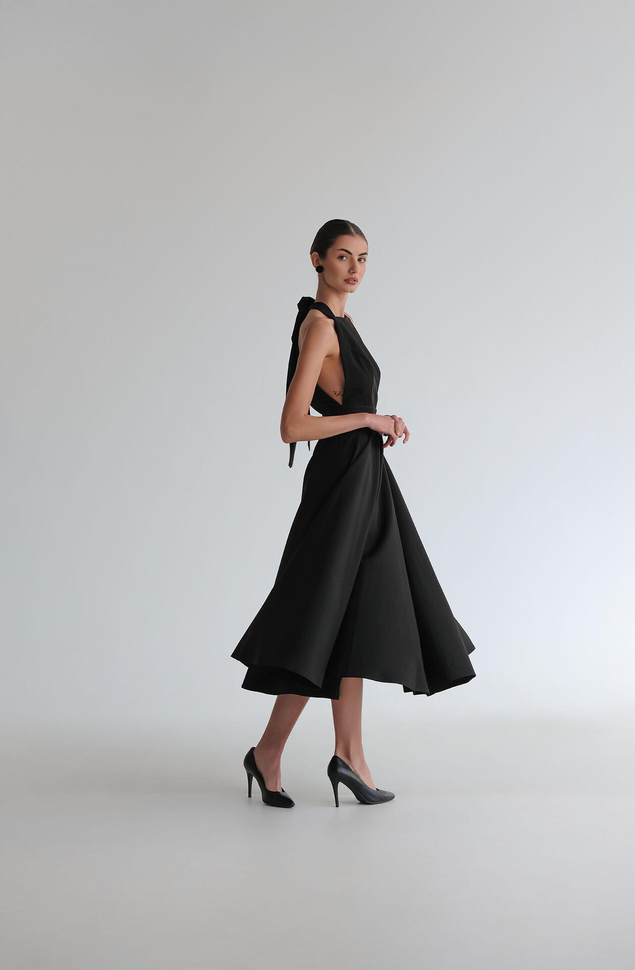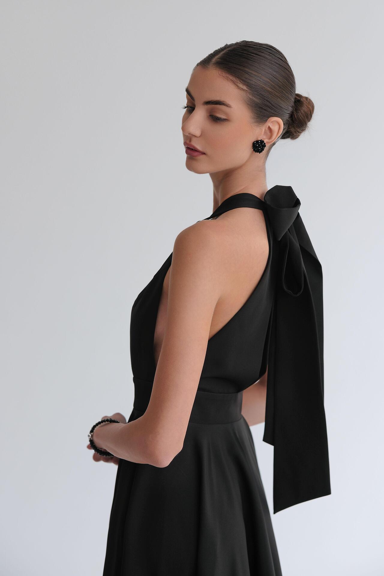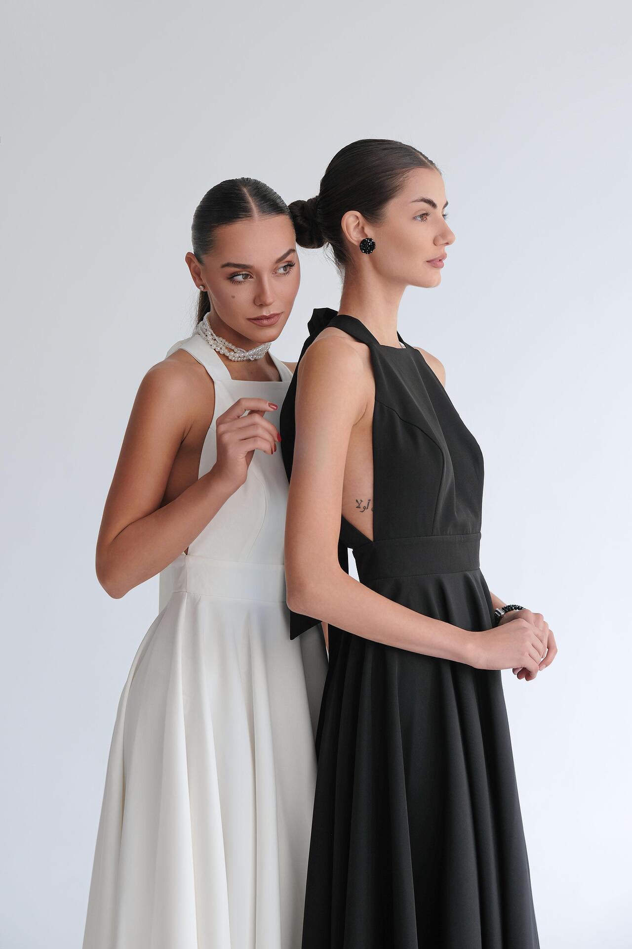 A classic long dress with a minimalist design. It has a captivating back and an elegant neck accent that emphasizes the sophistication of the look. The fitted cut fits the figure perfectly, and the freely falling skirt creates a feeling of lightness and elegance. The design is complemented by a beautiful neck detail that adds finesse and sophistication.