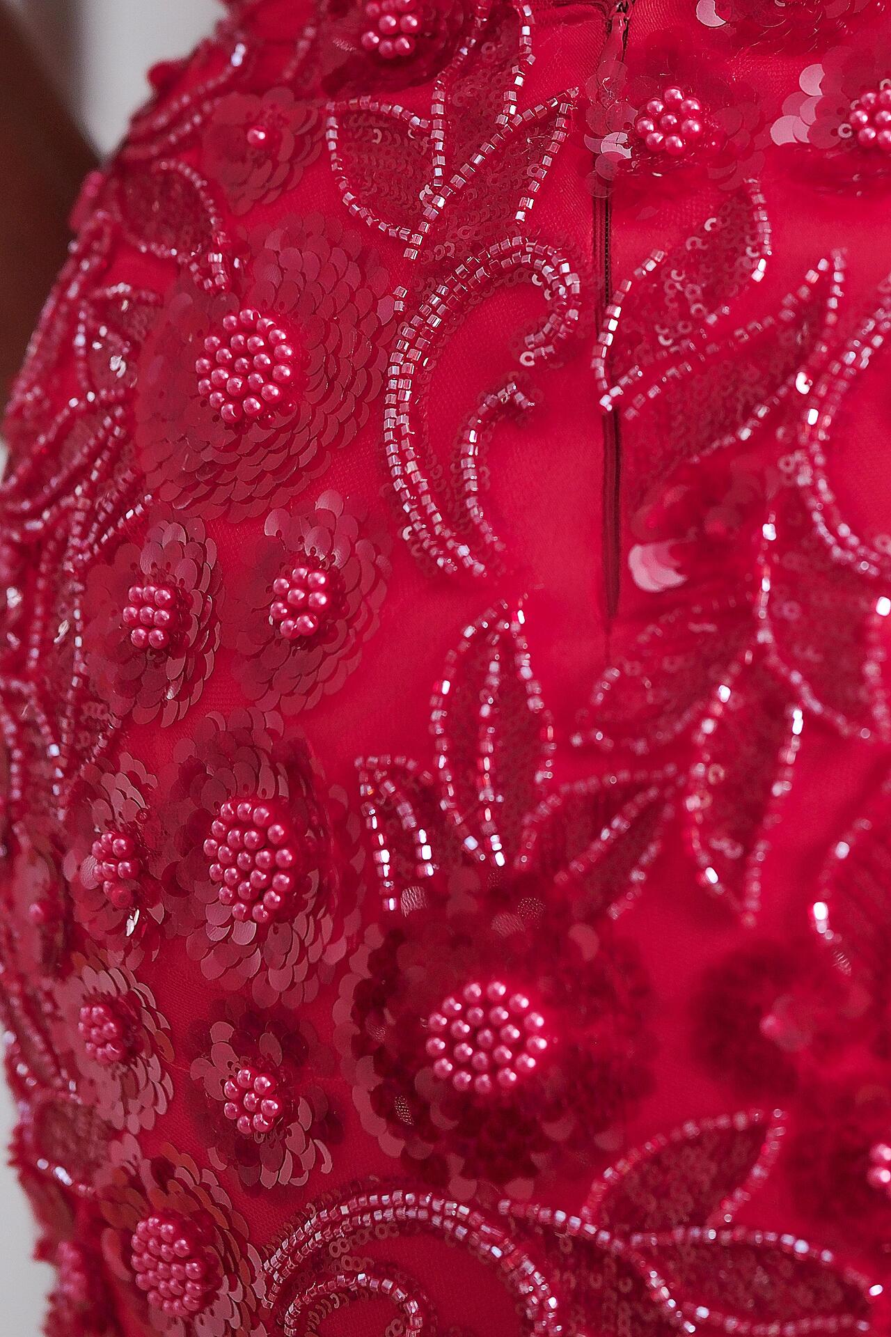 This dress is the choice of the woman who wants to be the center of attention and exude genuine elegance. The base of the dress is corseted, has built-in cups, is fastened with laces. It has a soft lining, and on top it is hand-decorated with sequins and beads. It can be made according to the client's measurements, as well as in another color.