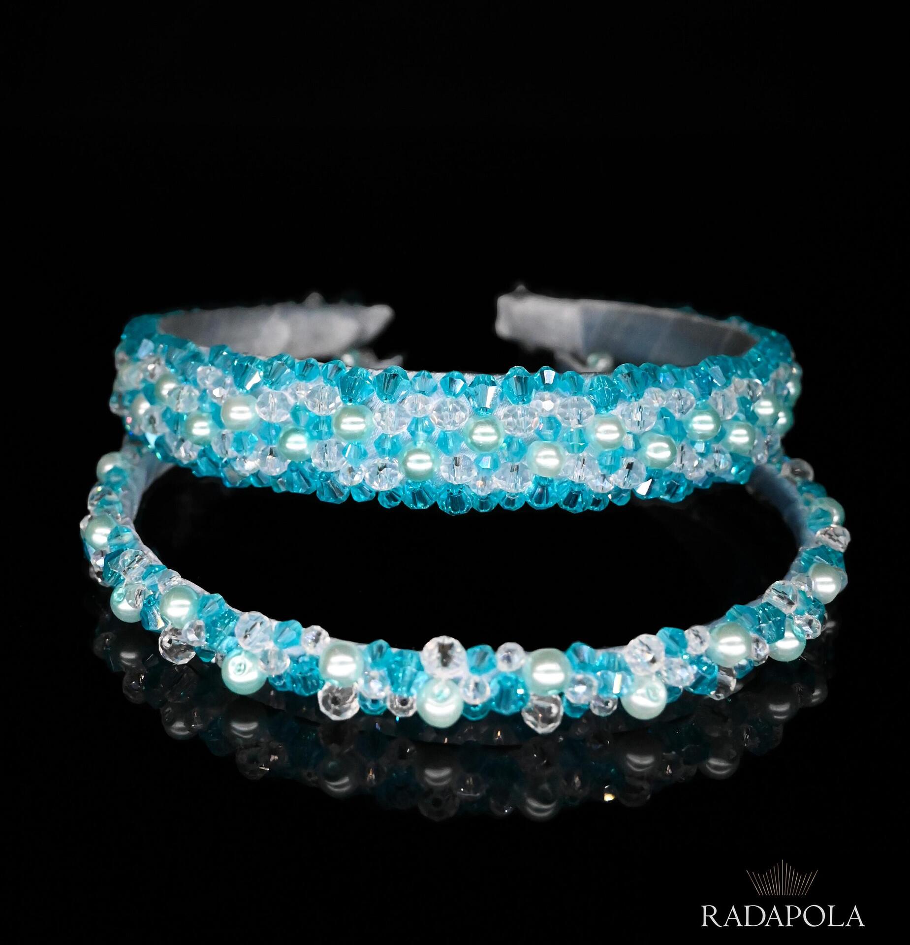 A set of handmade tiaras. Extremely beautiful, suitable for you and your little girl. Made of high quality materials and a hard cord that holds the crystals firmly and tightly on the bases of the tiaras. The size can be adjusted to be comfortable for everyone.
