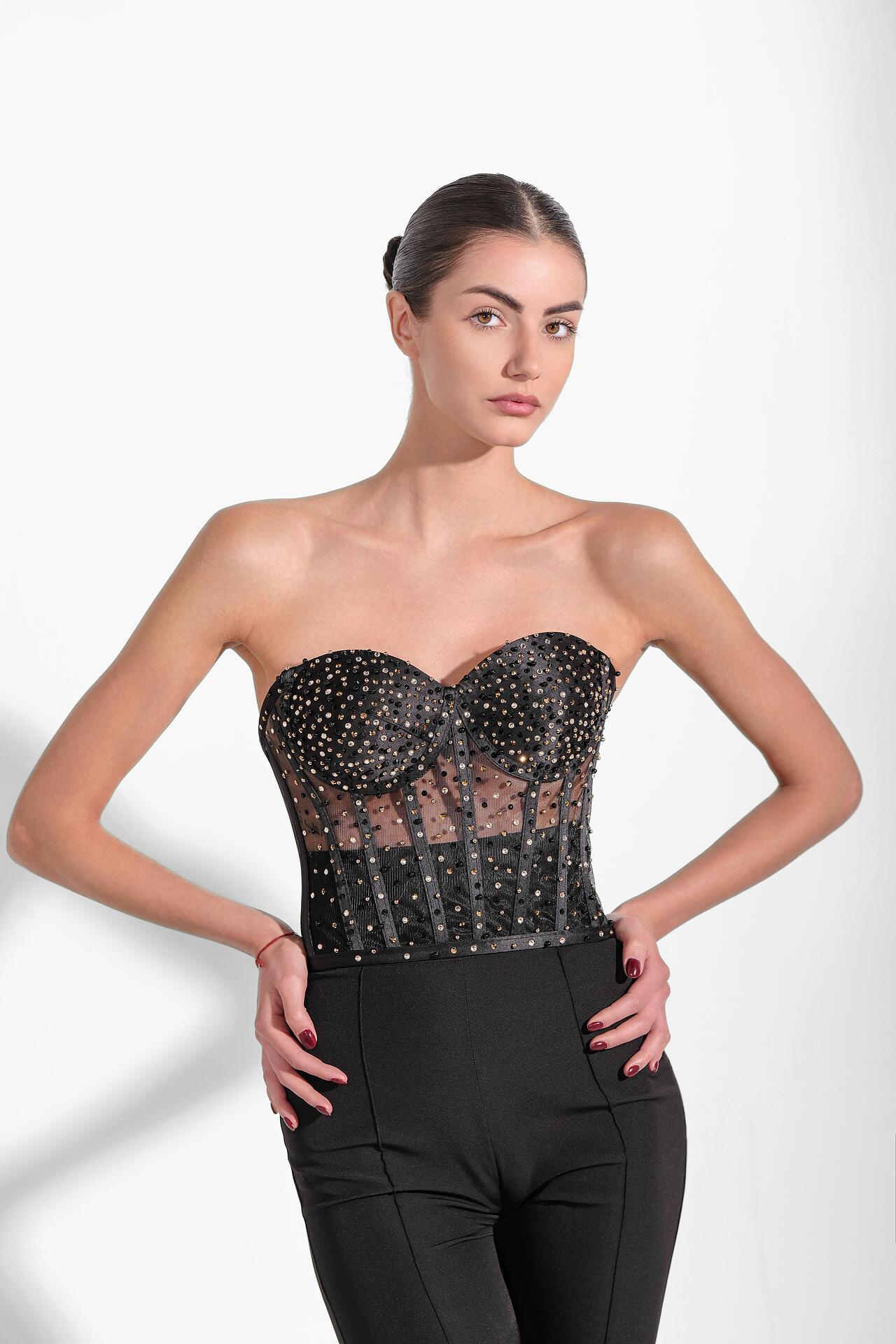 Corset with shiny stones and crystals in black: Renew