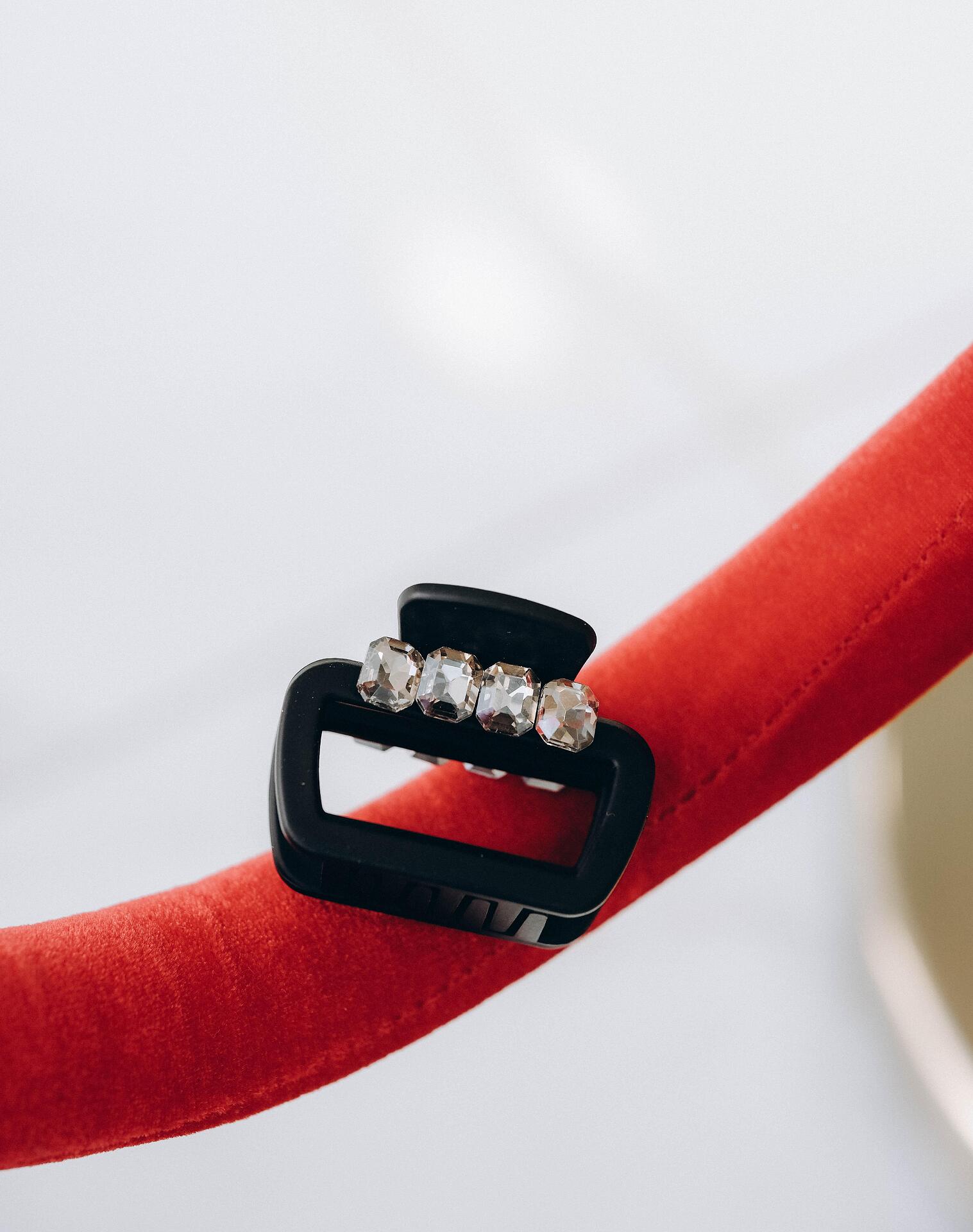 Small black hair clip with crystals
