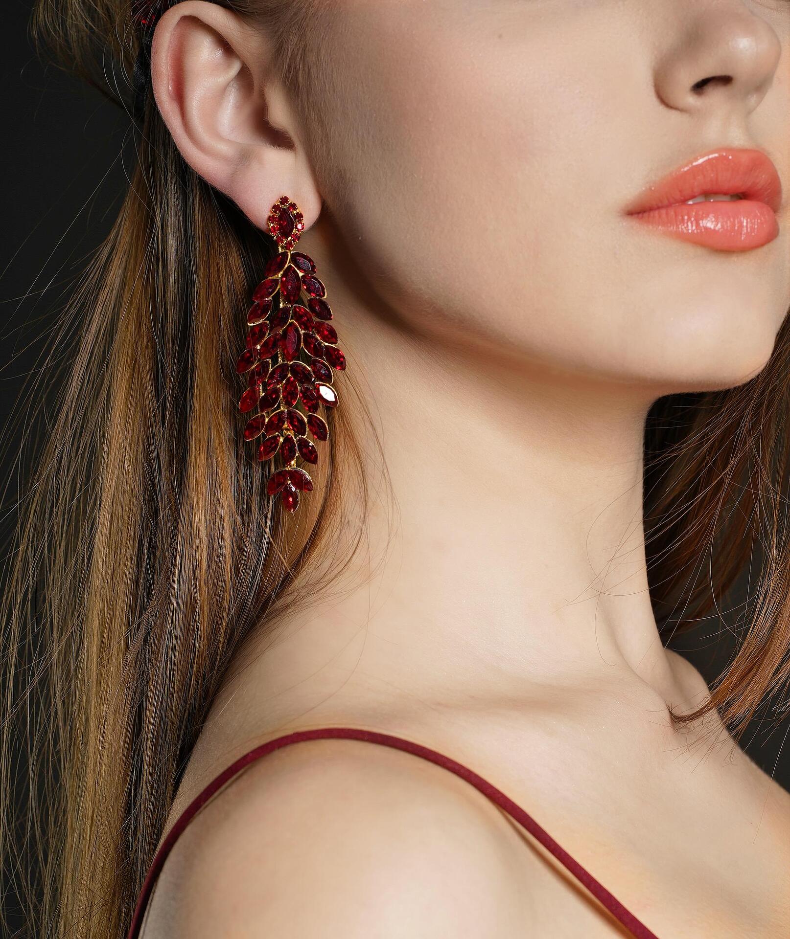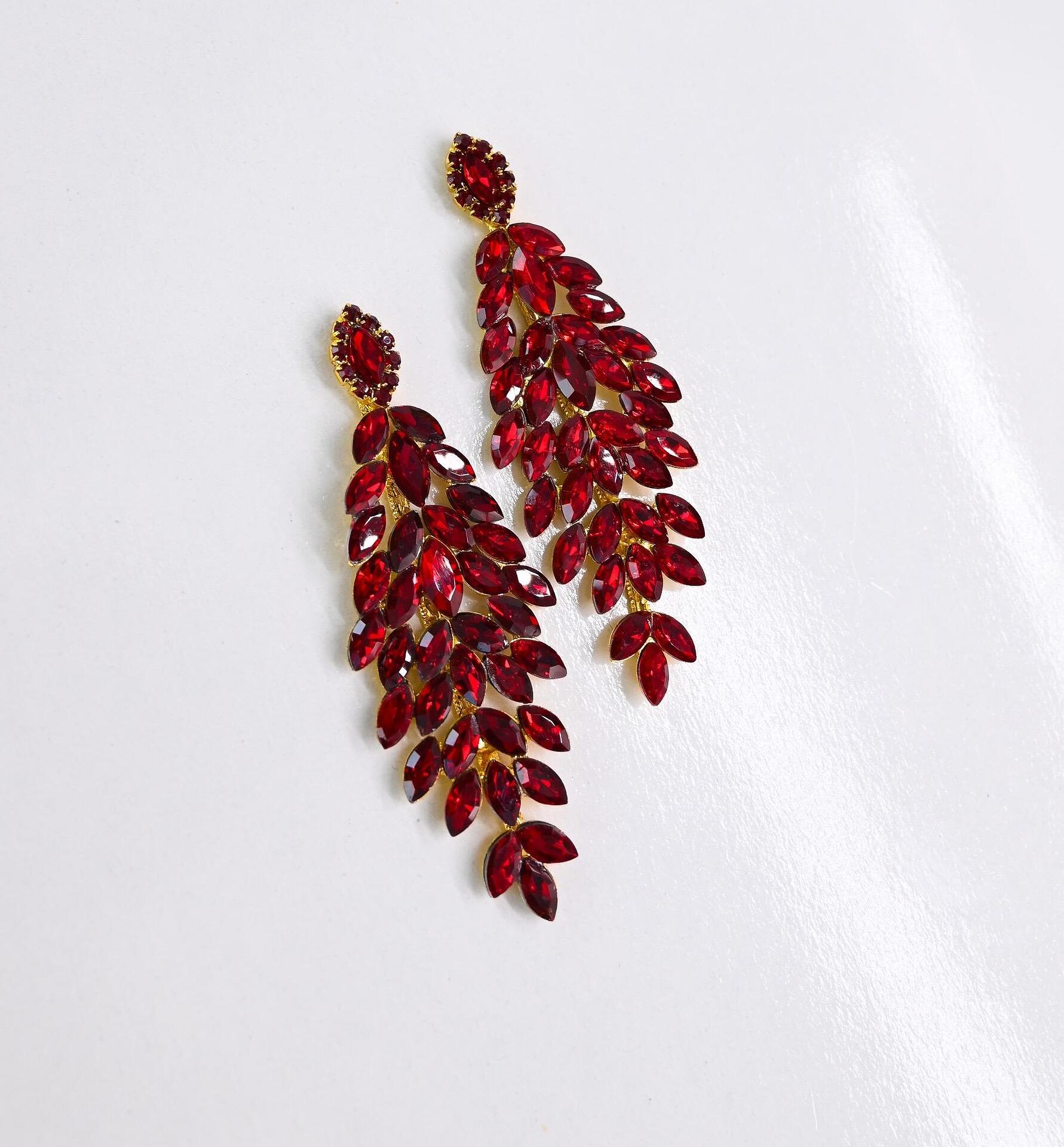 Earrings with crystals. Suitable for all occasions. Also available in other colors. Handmade from high quality materials. Fastened with a screw. Their length is about 8 cm.