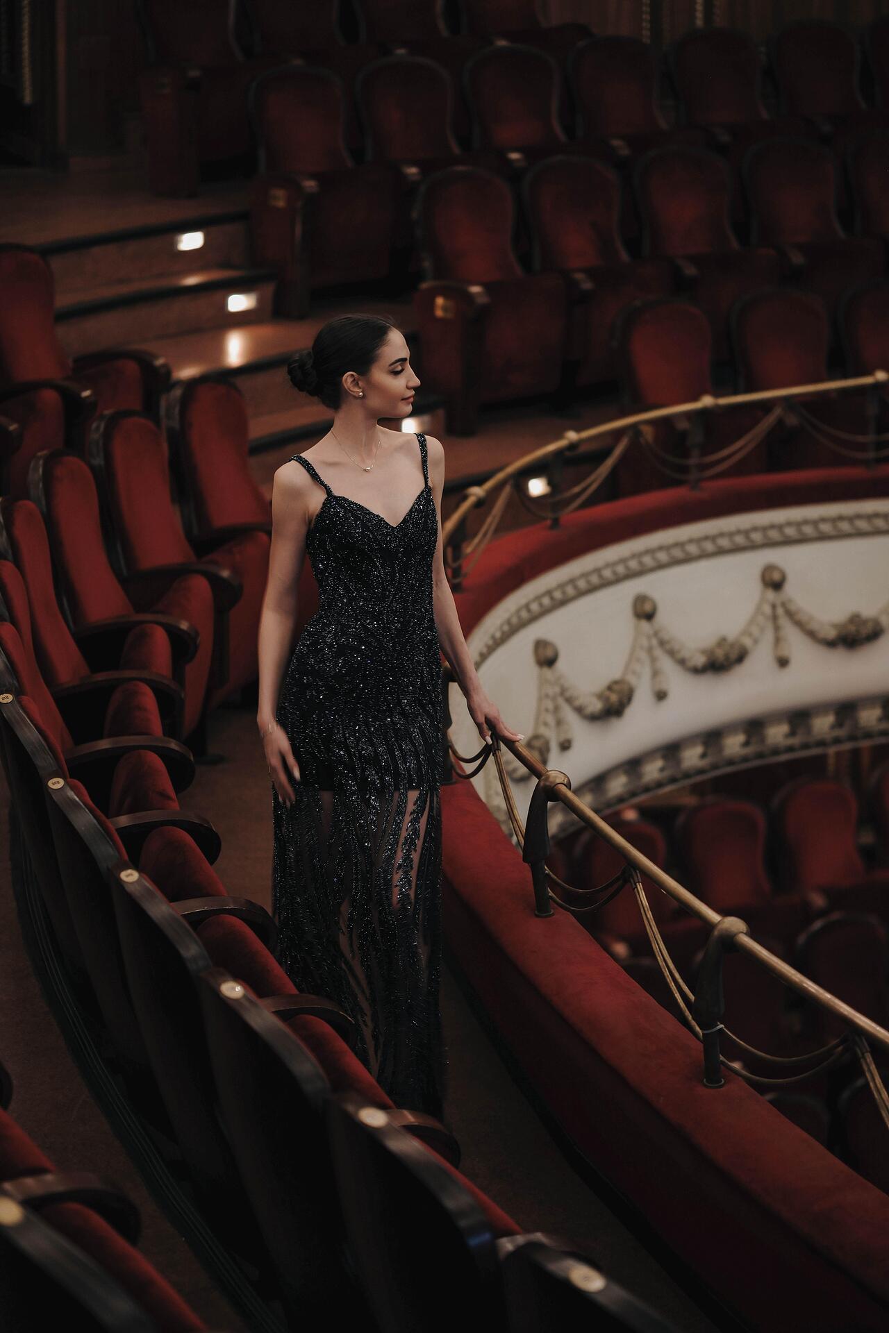 Glitter with every movement - this is the Tifani dress. With a soft lining that reaches just above mid-thigh for a comfortable feeling all evening. The top layer of the dress is a translucent mesh fabric with exquisite floral glitter details. The dress is extremely comfortable to wear due to the presence of straps, adjustable ties at the back and built-in cups.