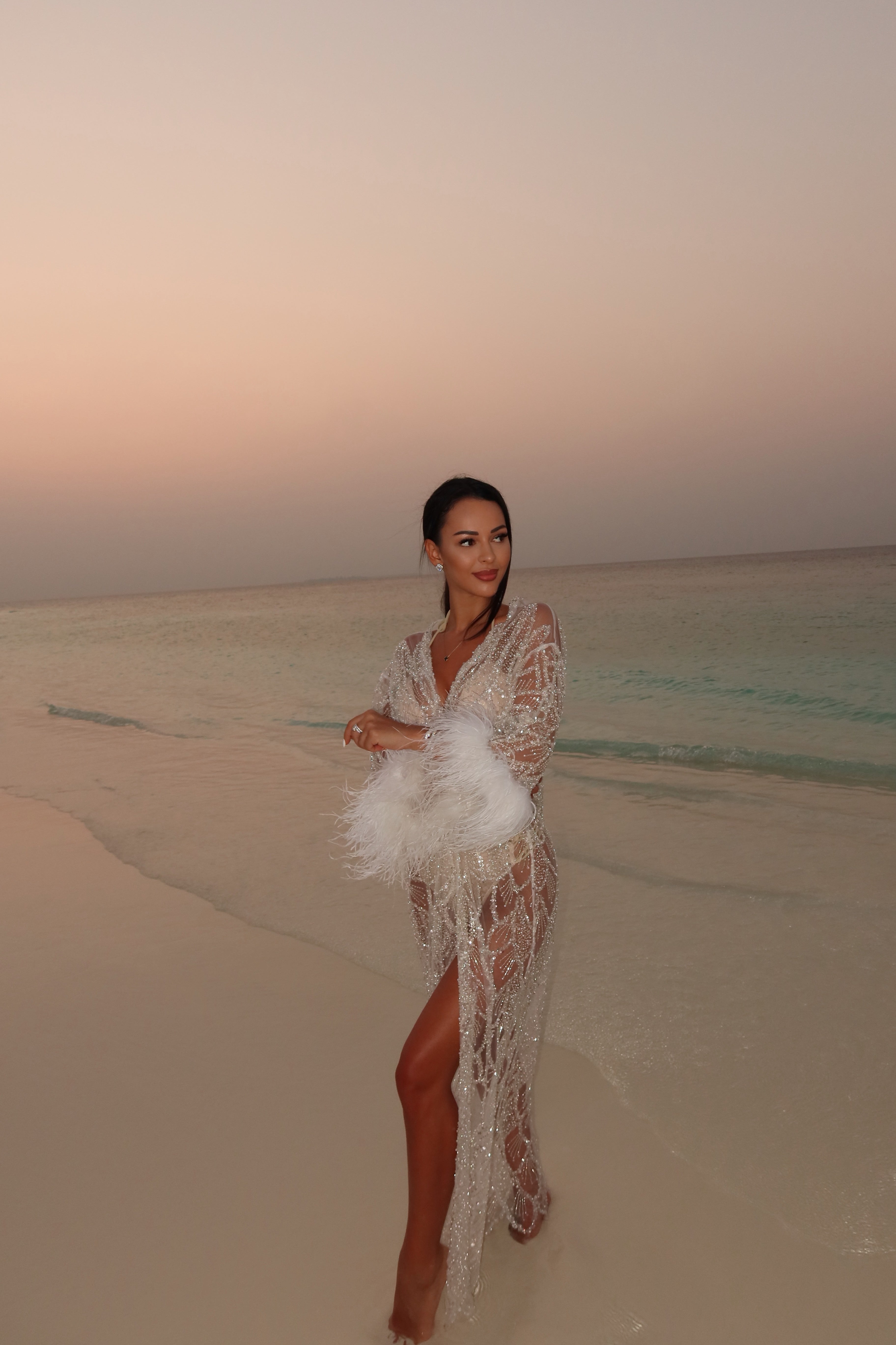 Ръчно изработена жилетка в бяло с пера: Luxury Eve