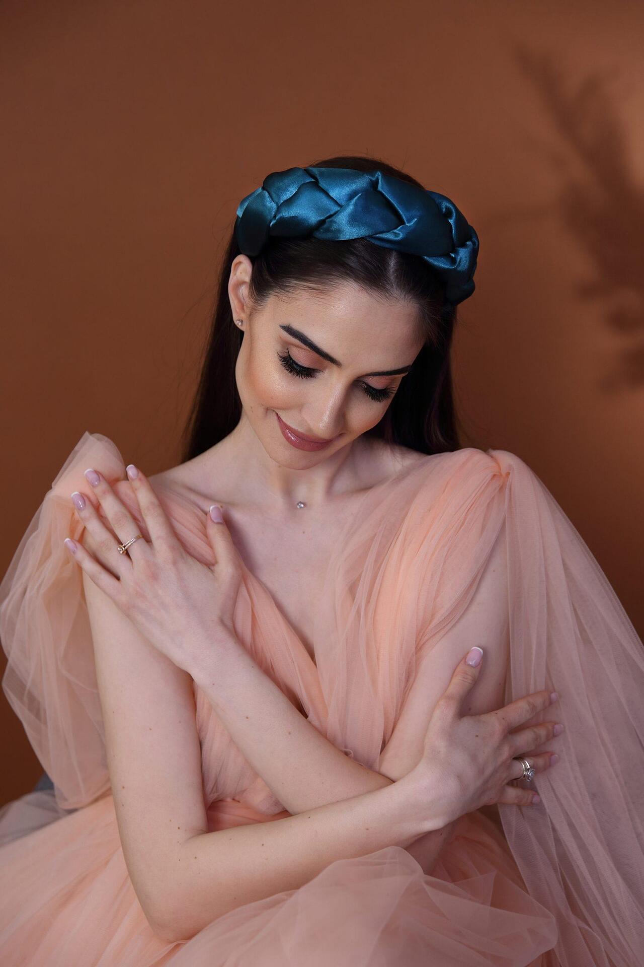 Textile satin tiara. Light and delicate, suitable for everyday life. It is handmade from high-quality materials. The size is universal.