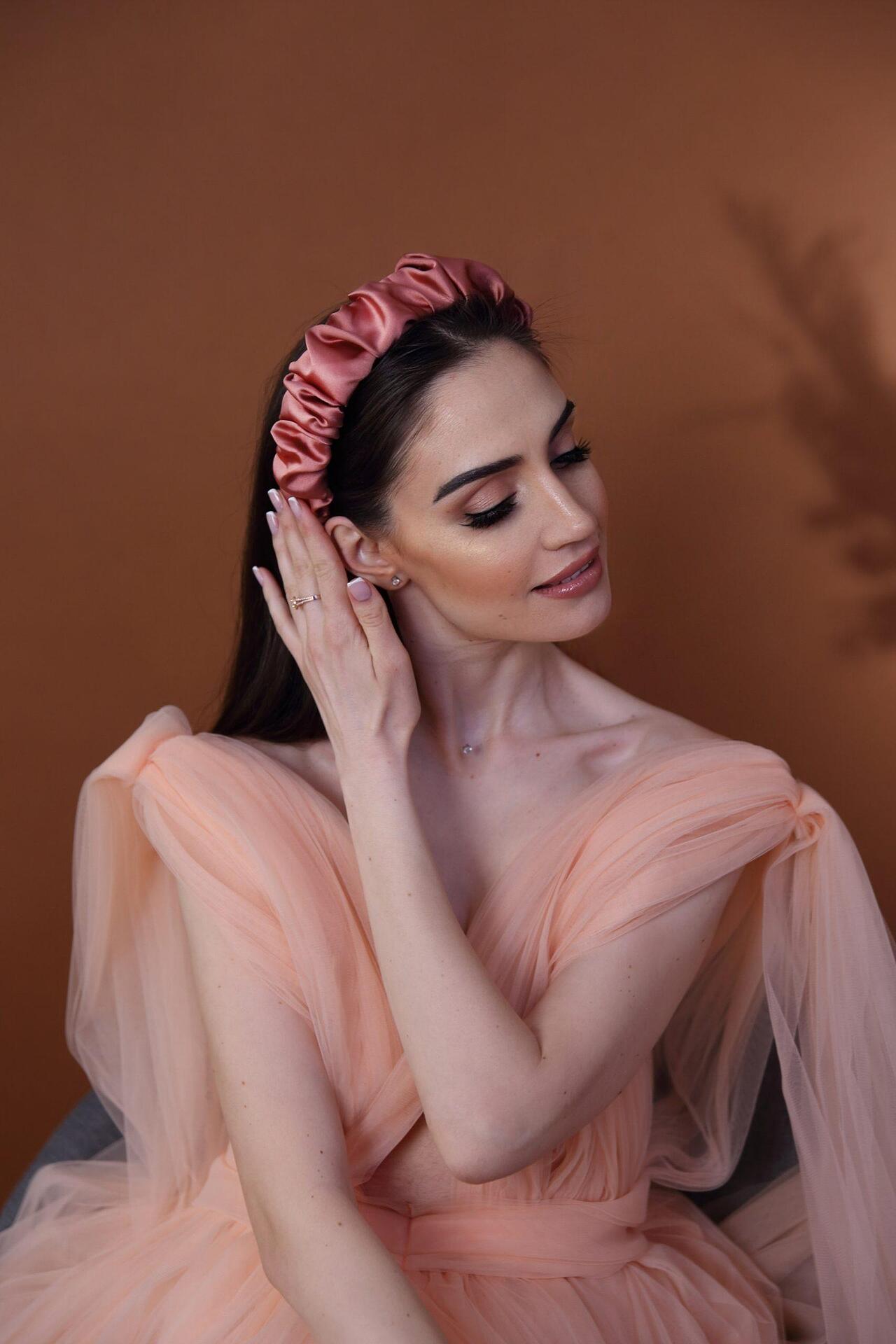 Textile satin tiara. Light and delicate, suitable for everyday life. It is handmade from high-quality materials. The size is universal.