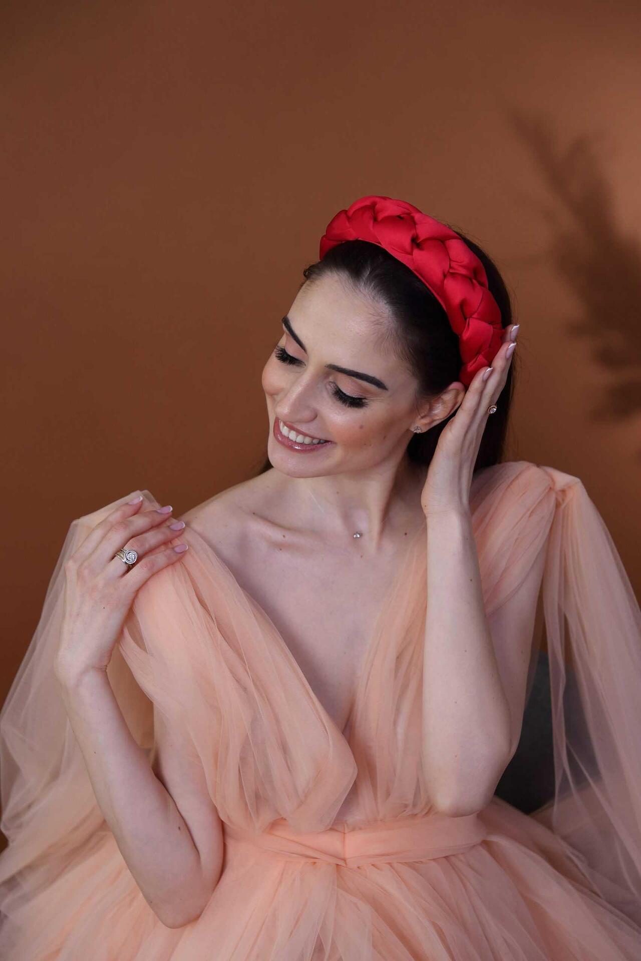 Textile satin tiara. Light and delicate, suitable for everyday life. It is handmade from high-quality materials. The size is universal.