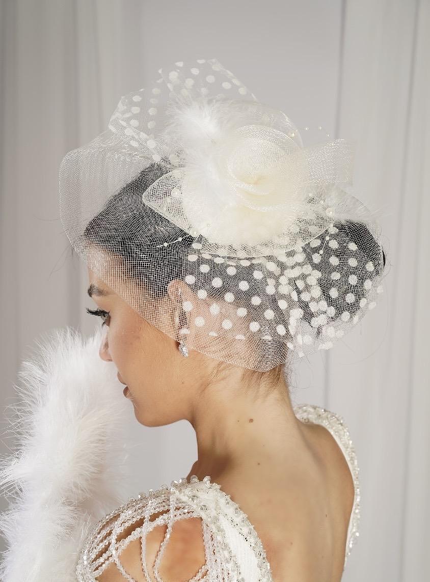 Elegant white hats. Made of high quality materials.