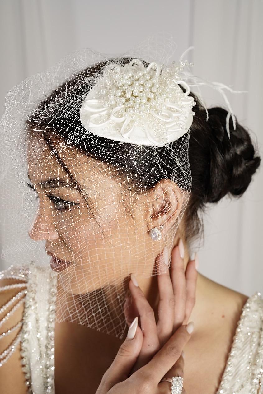 Crystal/pearl hats with mesh
