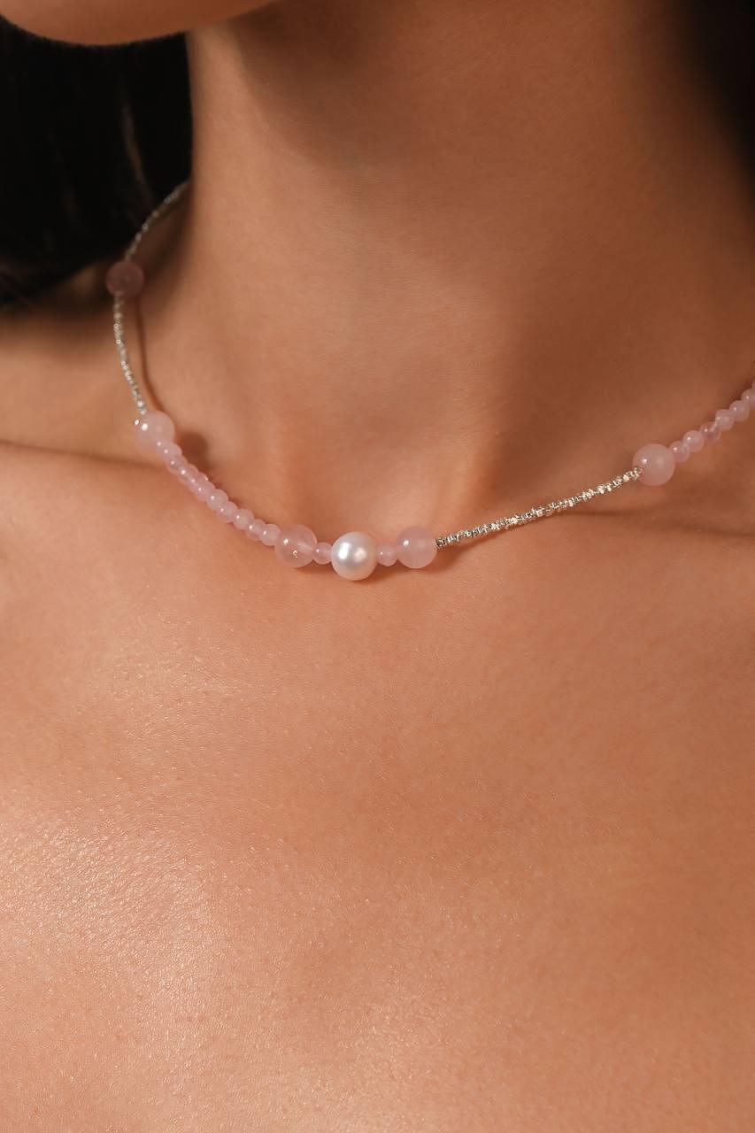 A necklace of delicate pink, white and silver beads creates a feeling of delicacy and elegance. Suitable for both everyday use and special occasions. The necklace is made of high-quality materials that ensure durability and comfort when wearing. Its light weight and convenient clasp make it easy to put on and take off.
